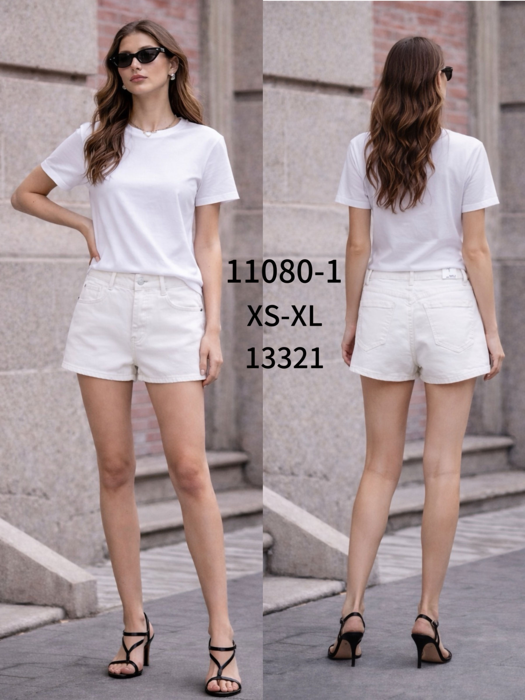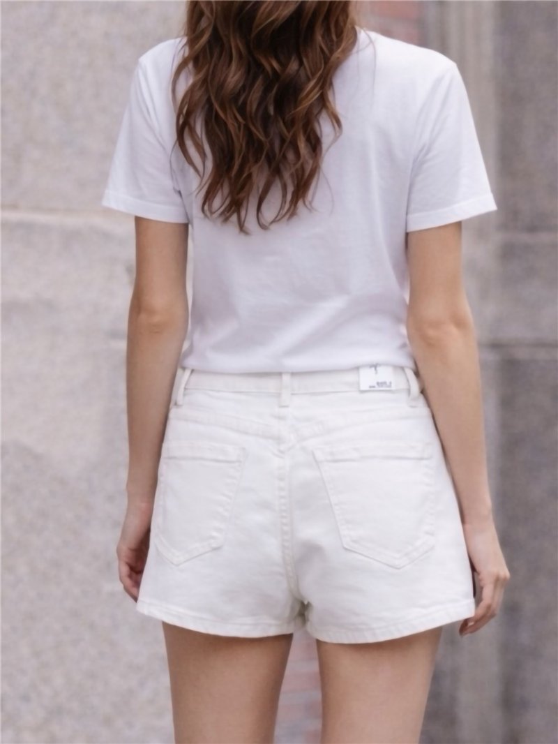 Shorts vaqueros. Color liso. Tiro alto Cinco bolsillos. Dobladillo vuelto. Cierre frontal con cremallera y botón metálico. Tiro 27,5 cm. Bajo 30 cm.