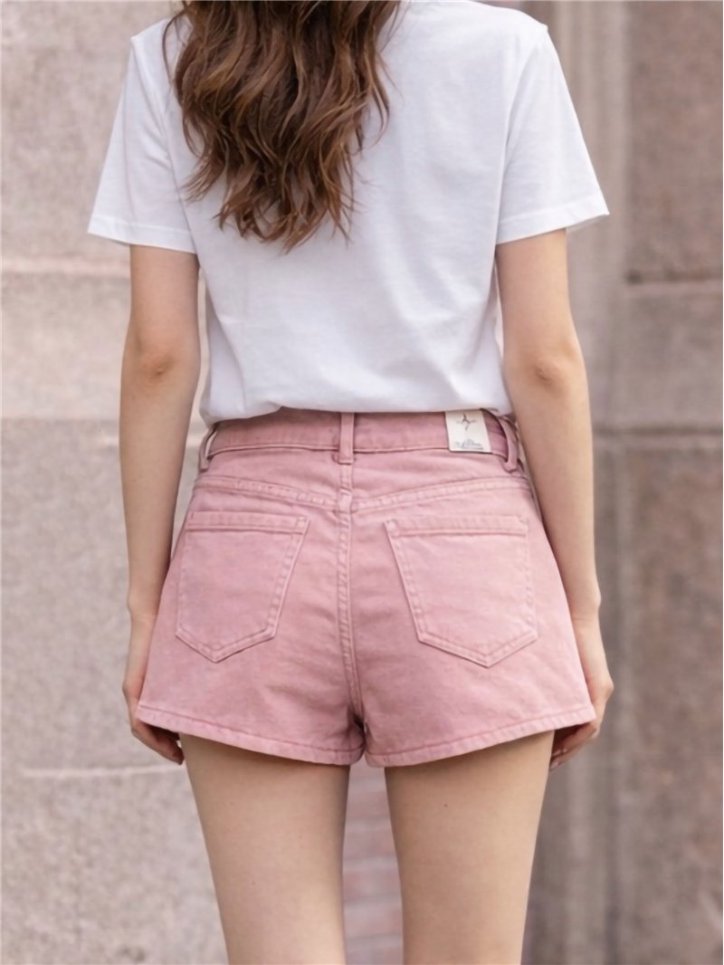 Shorts vaqueros. Color liso. Tiro alto Cinco bolsillos. Dobladillo vuelto. Cierre frontal con cremallera y botón metálico. Tiro 27,5 cm. Bajo 30 cm.