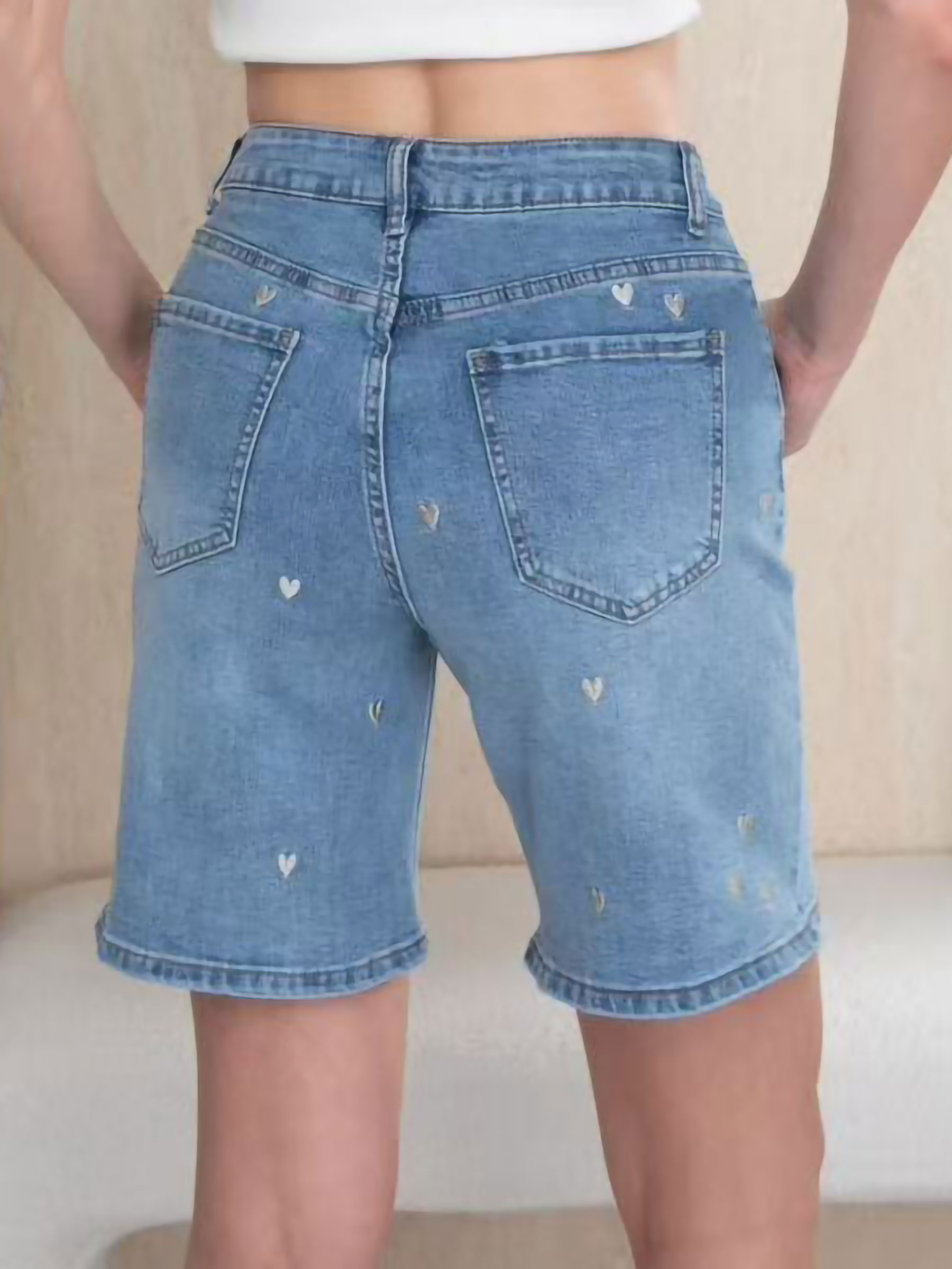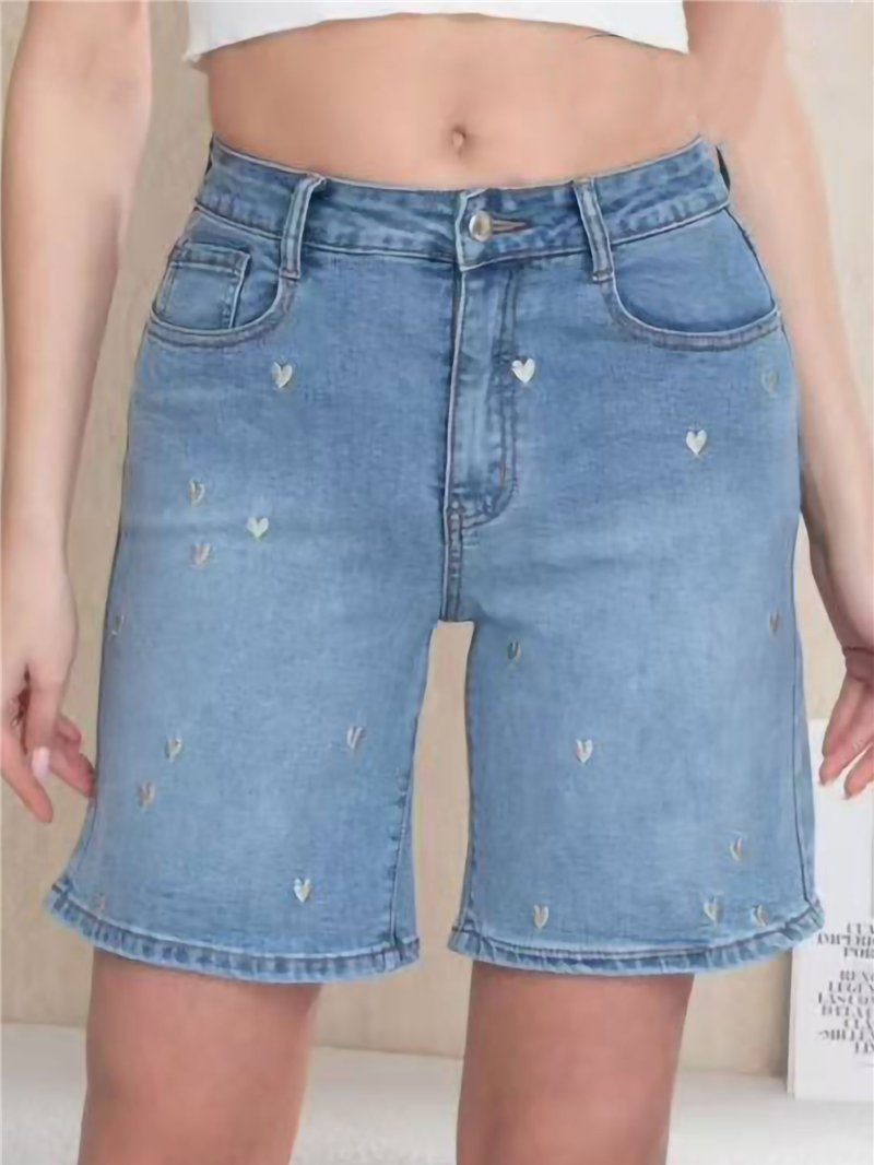 Bermuda vaquera corazones bordados