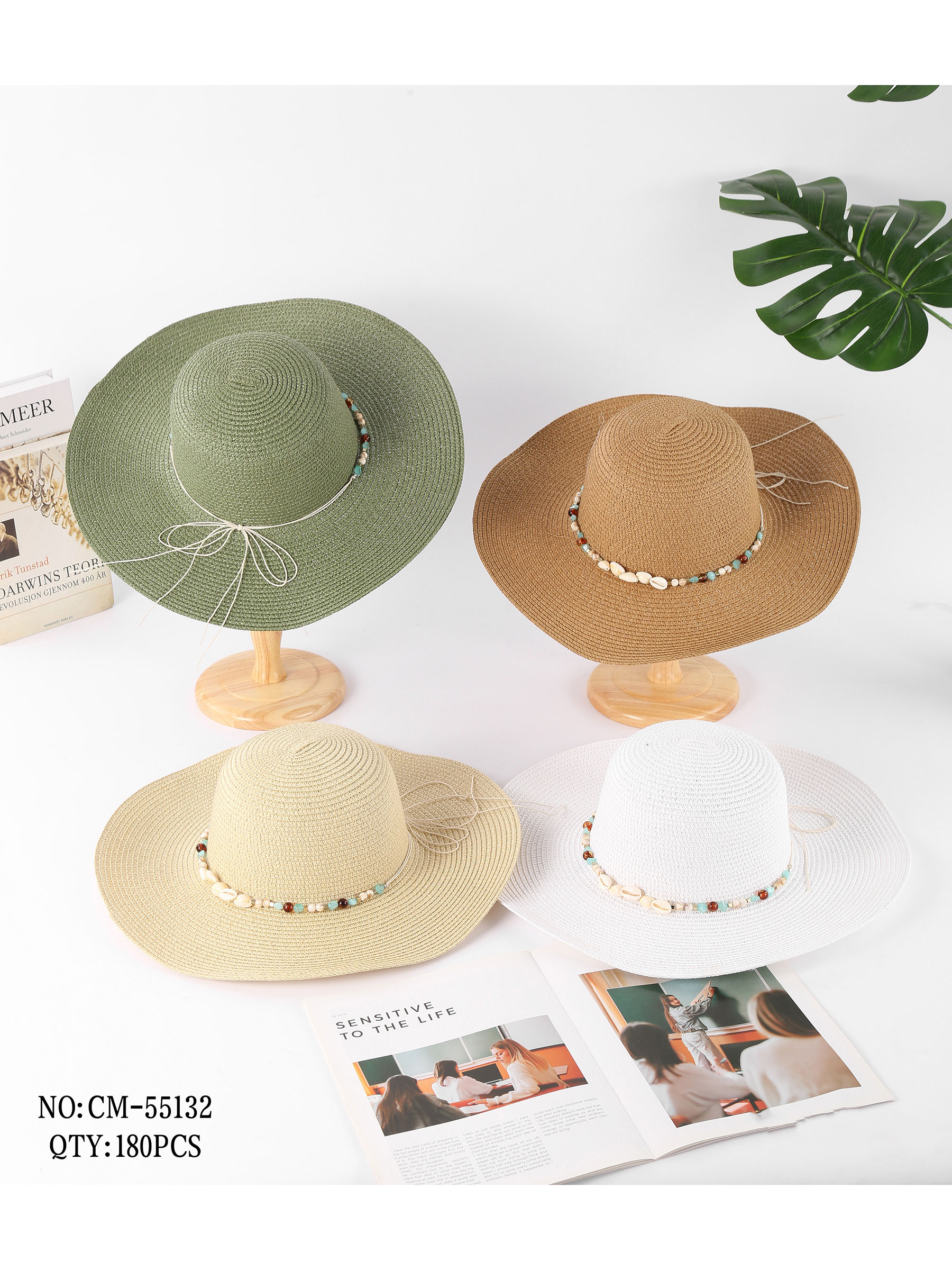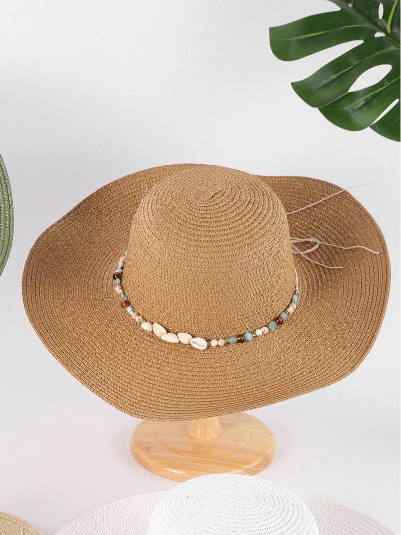 Sombrero de rafia con abalorios multicolor