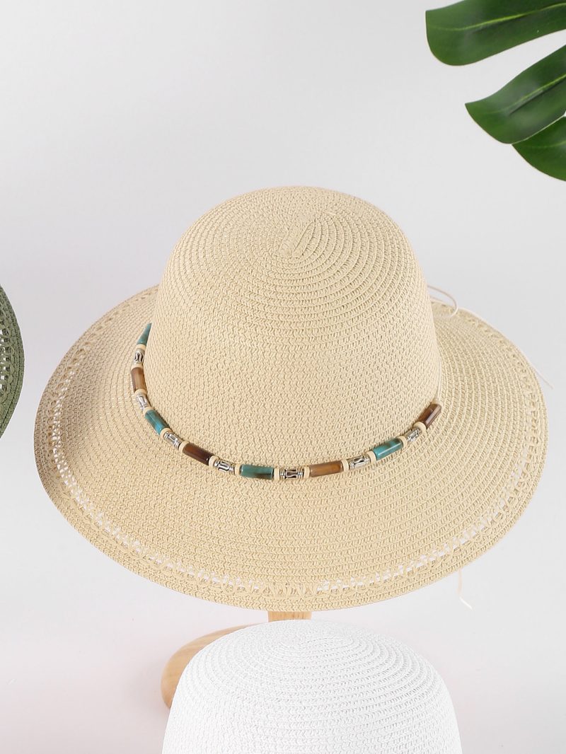 Sombrero de rafia ala calada con cuentas tubulares