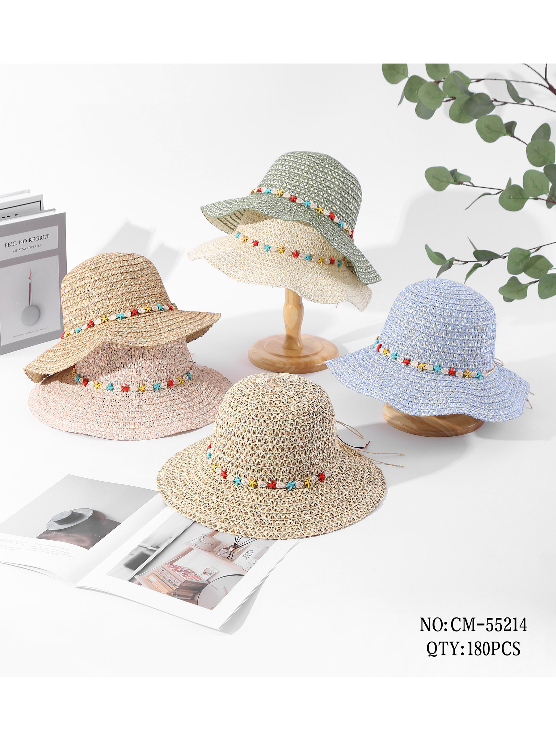 Sombrero de rafia calado con banda de estrellas de mar multicolor