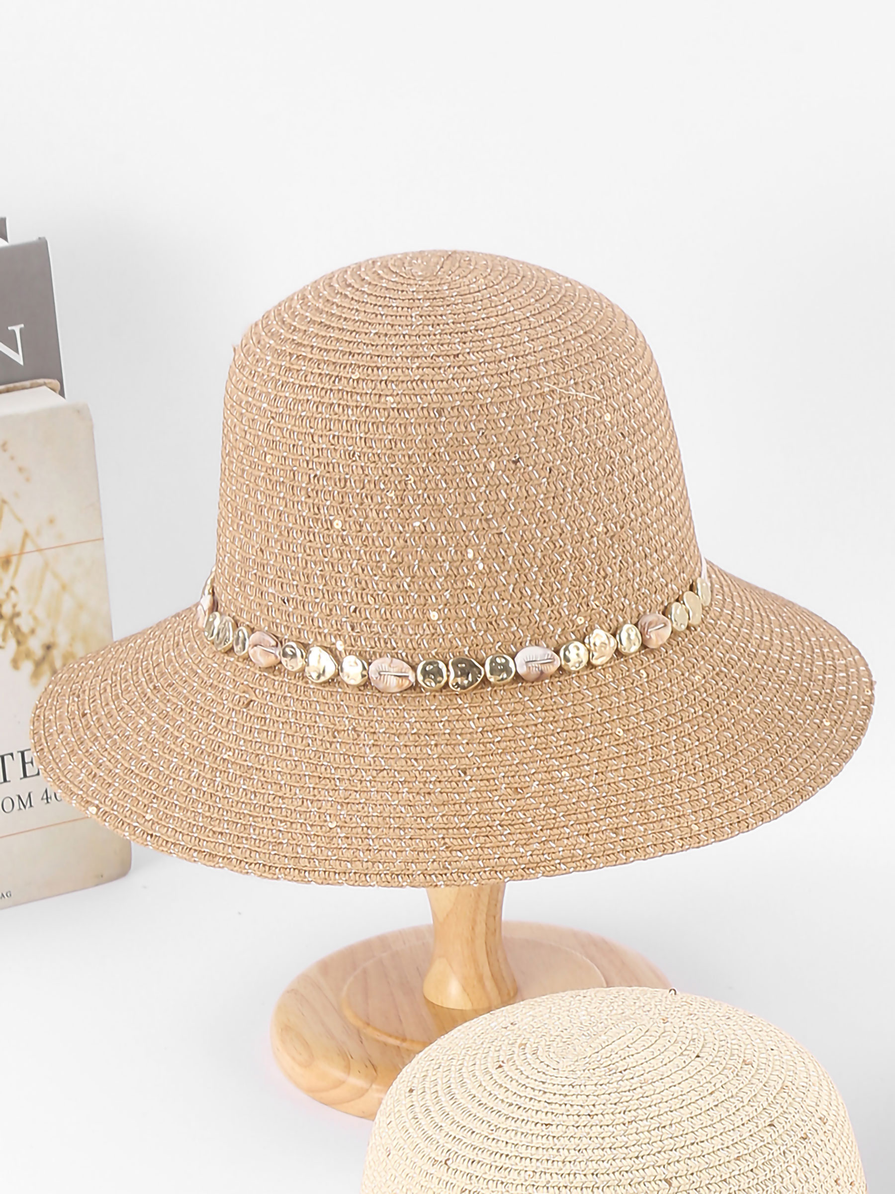 Sombrero de rafia con cinta de conchas
