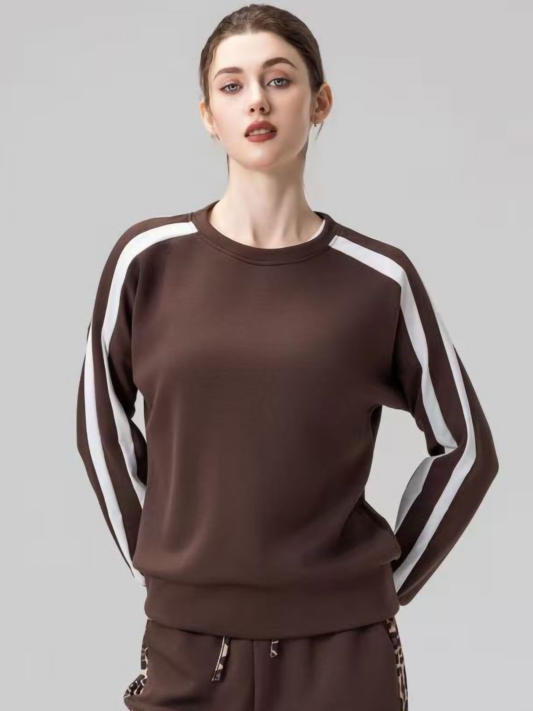 Sudadera de cuello redondo. Detalle de banda combinada a contraste. Manga larga.