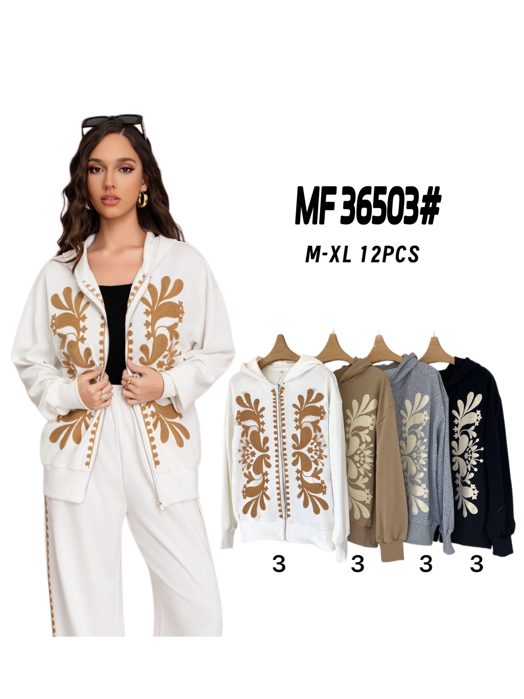 Detalles de sudadera bordado floral capucha cremallera MF-MF36503