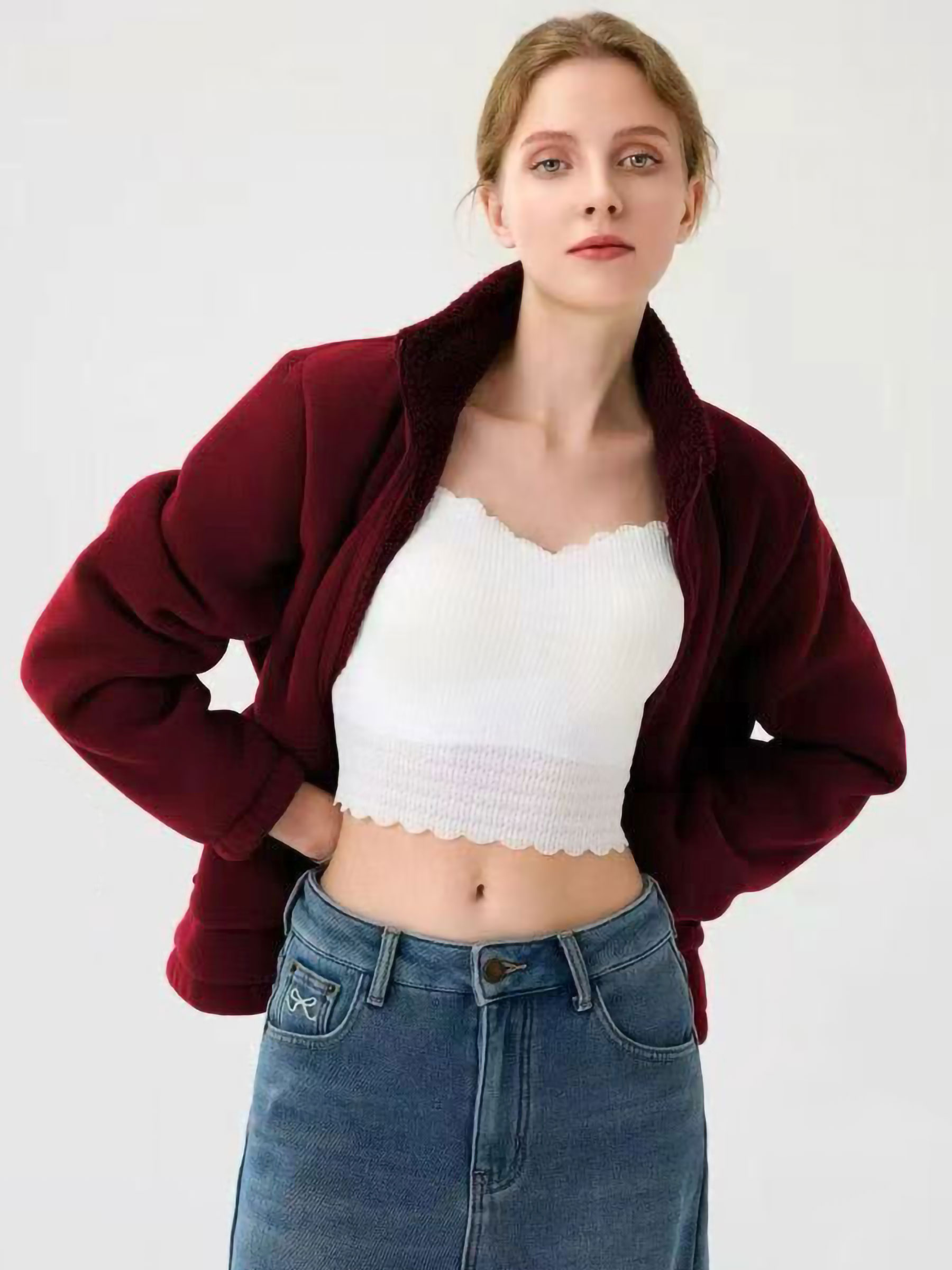 Sudadera polar con borreguito. Bolsillos laterales. Manga larga. Cierre de cremallera central.