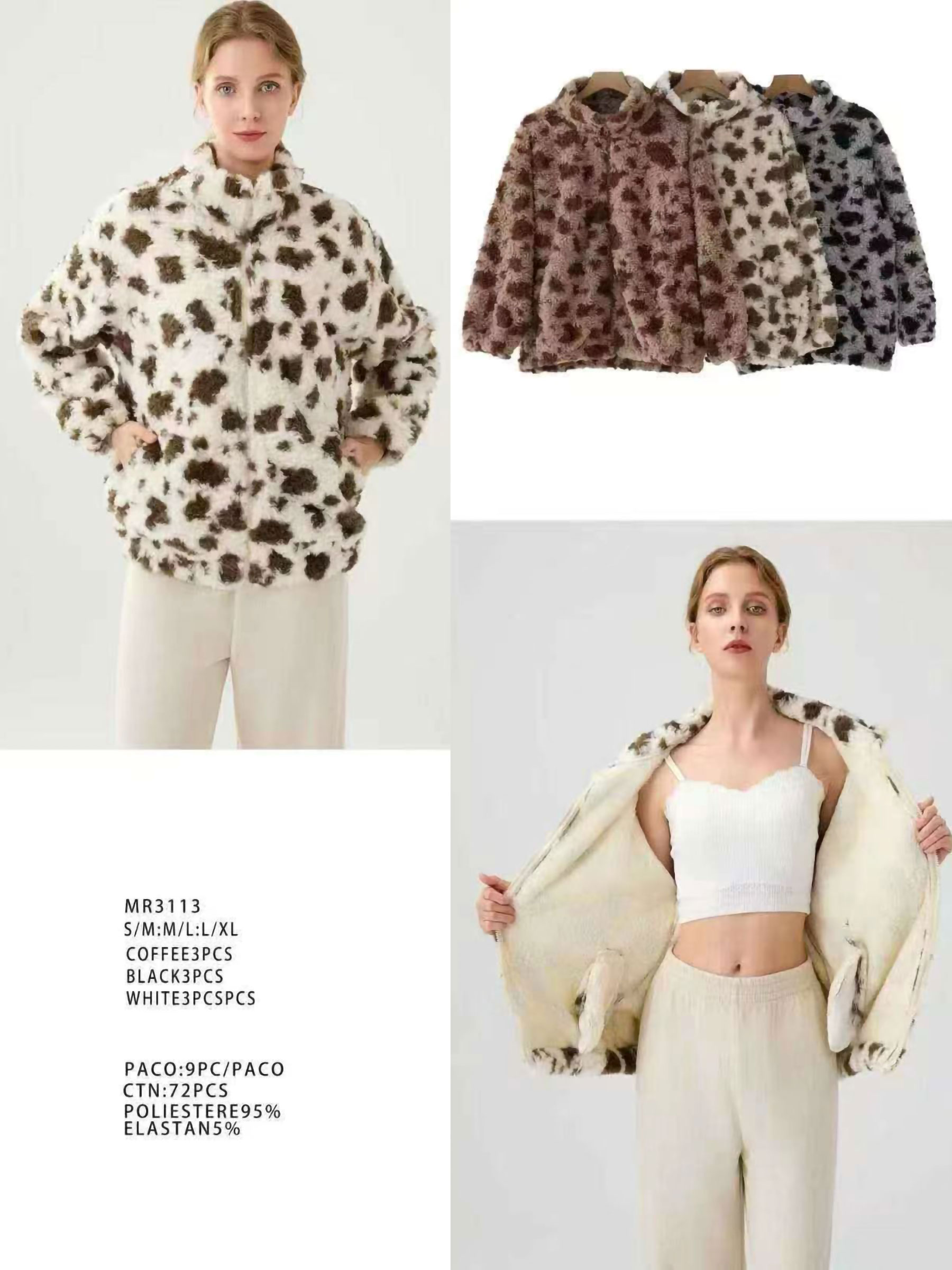 Detalles de chaqueta efecto pelo animal print LS-MR3113