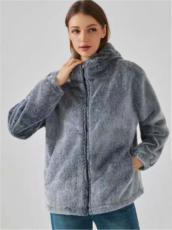 Detalles de chaqueta pelo con capucha y cremallera LS-MR3118