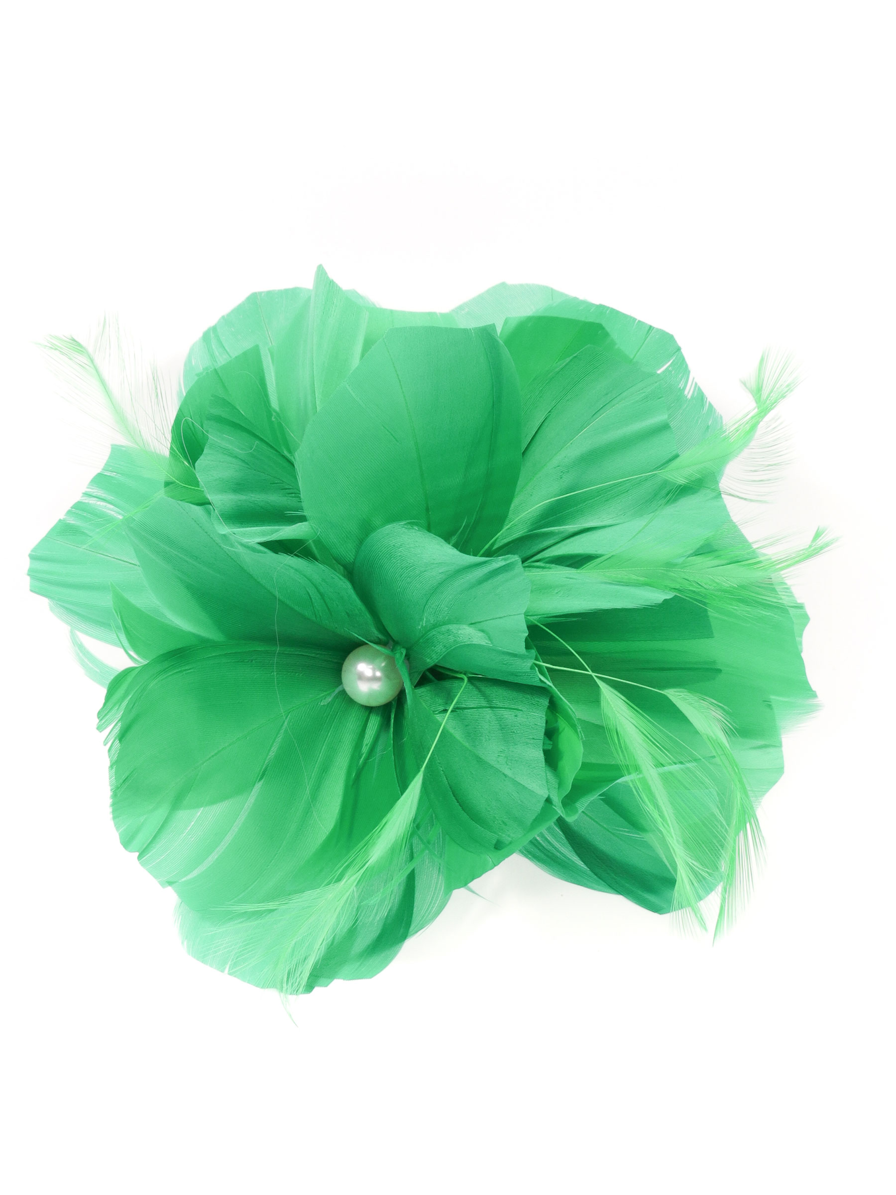 Detalles de AD-22011 VERDE-HIERBA tocado pequeño plumas perlas
