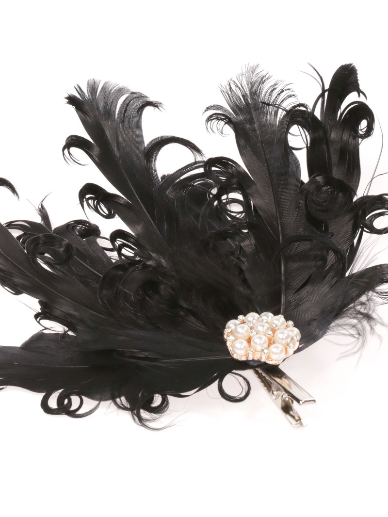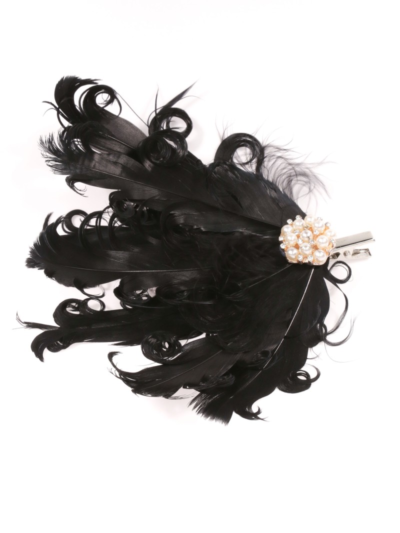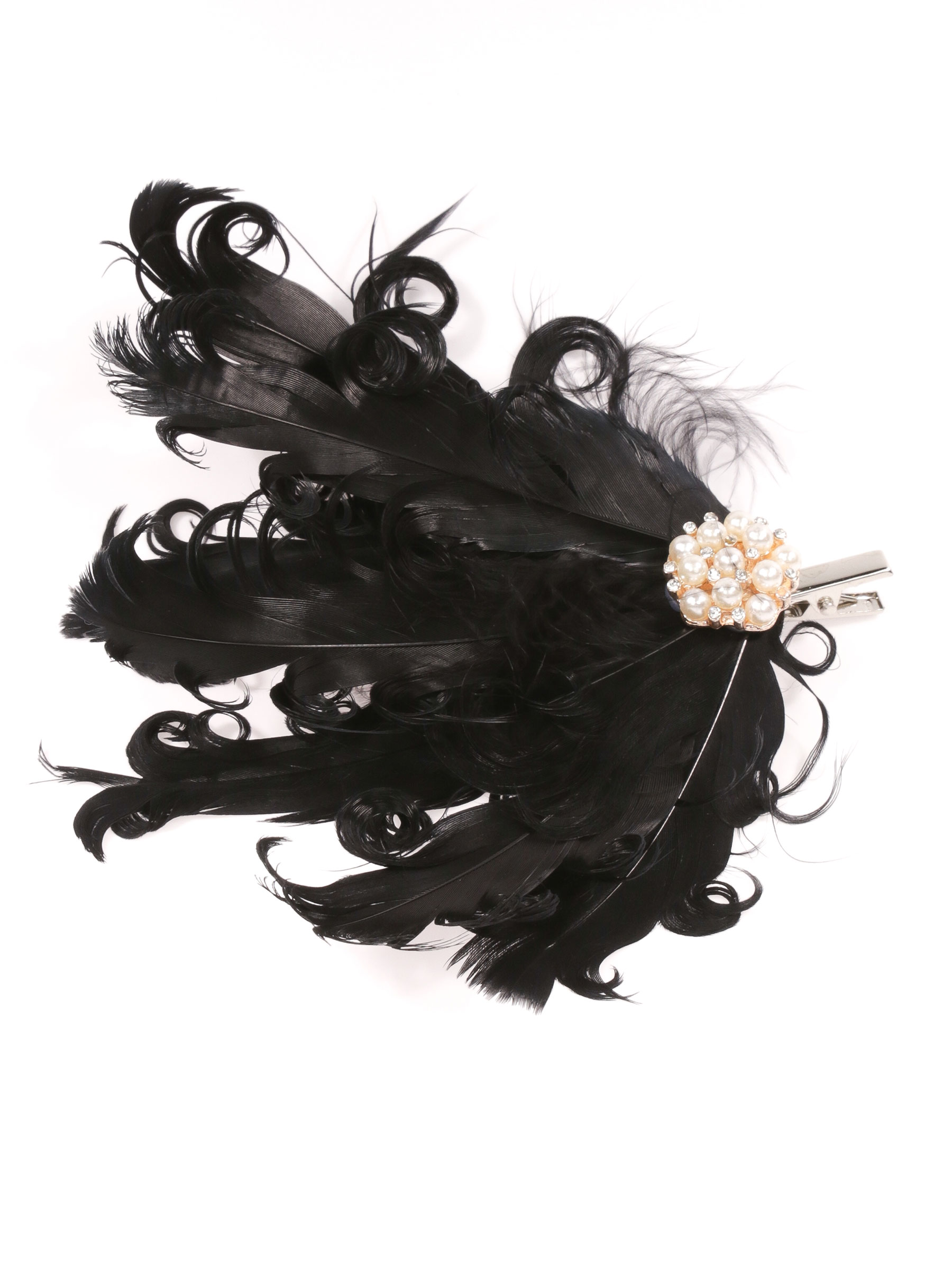 Detalles de AD-22013 NEGRO tocado pequeño plumas perlas
