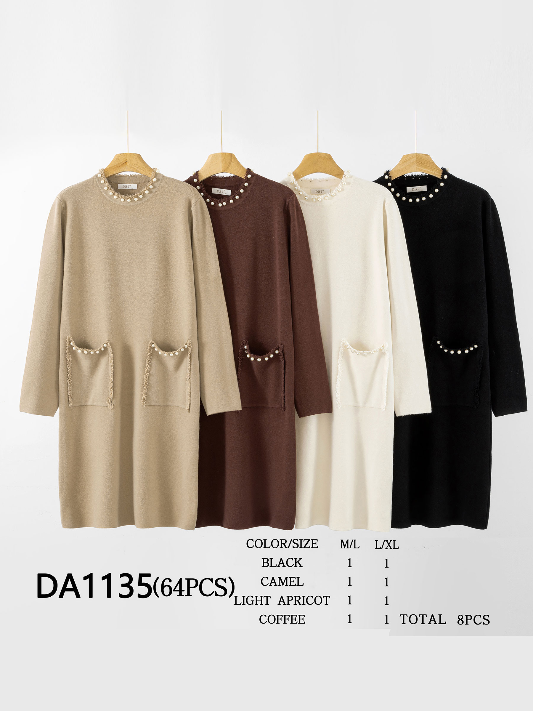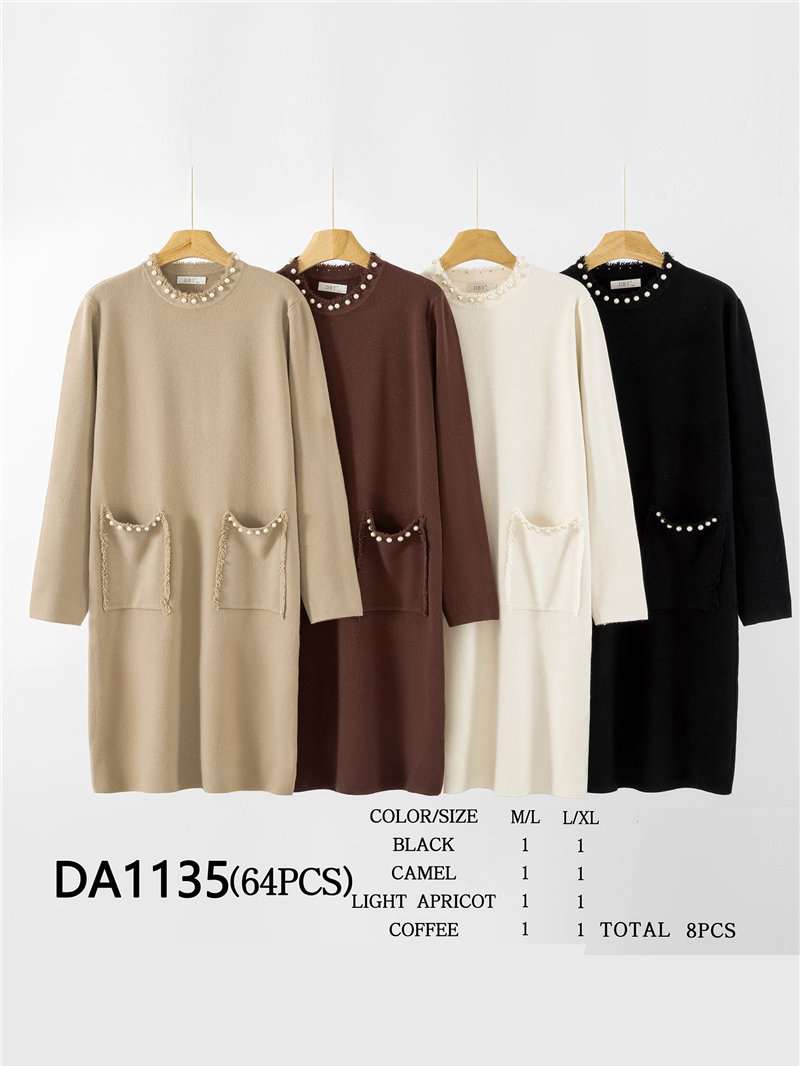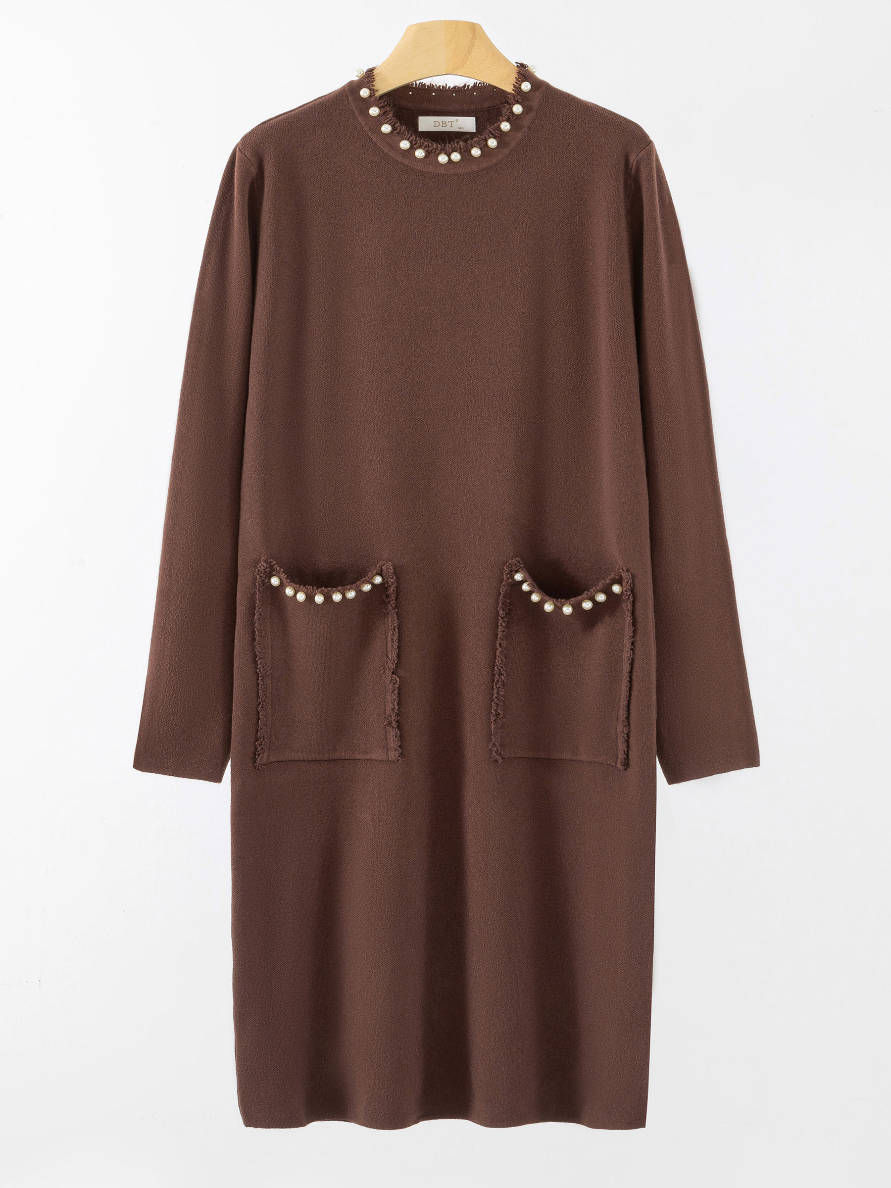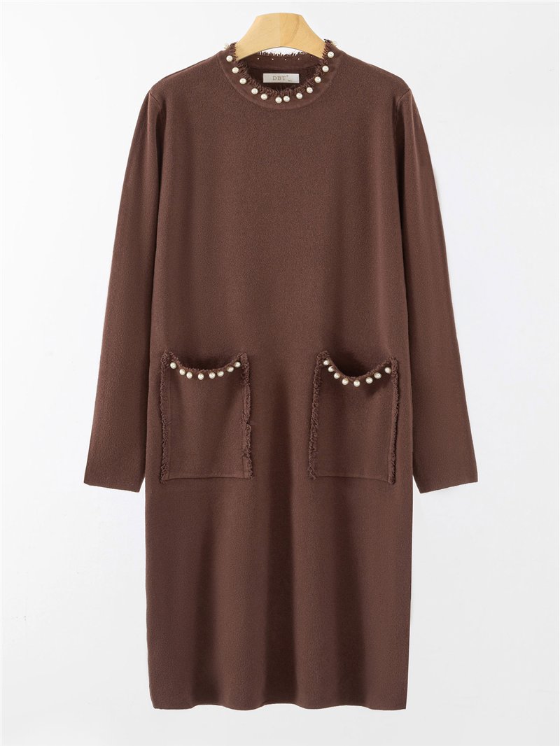 Detalles de vestido punto bolsillos perlas DB-DA1135