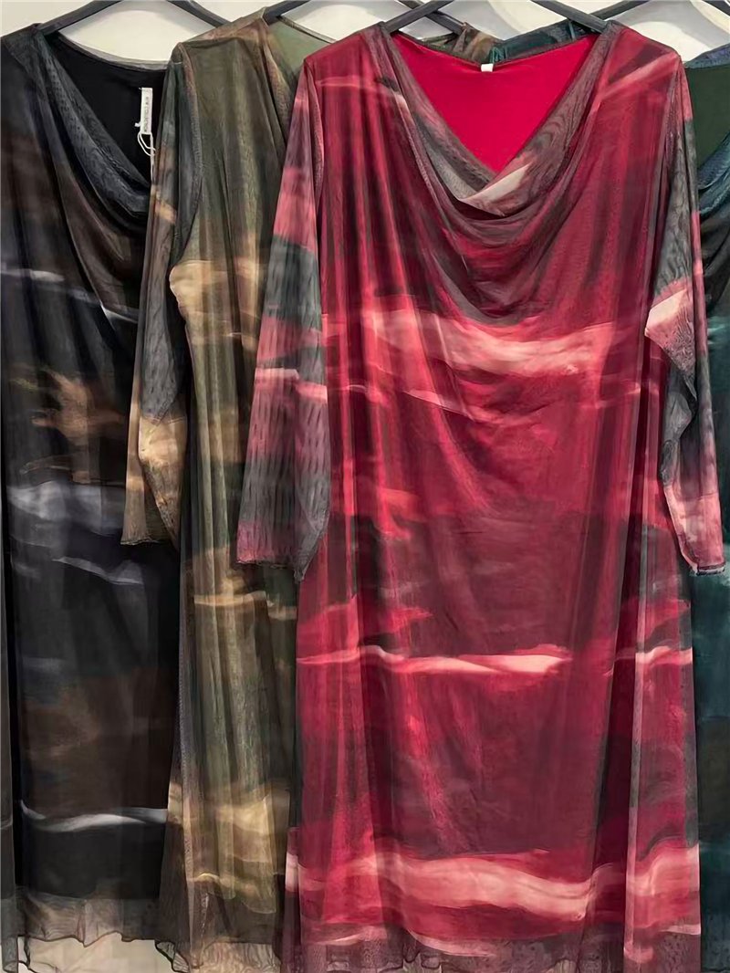 Detalles de vestido tie-dye cuello drapeado ZD-51222