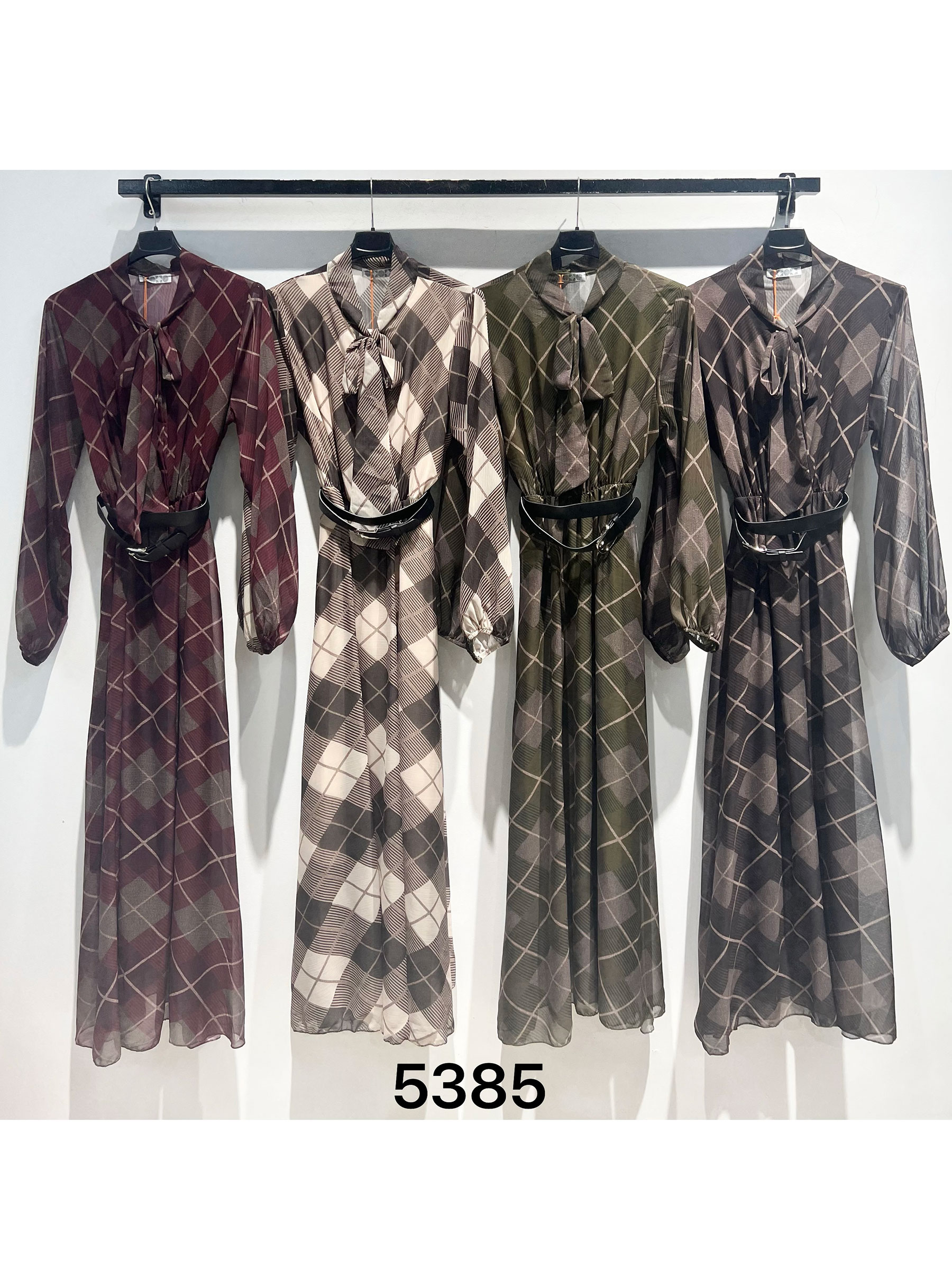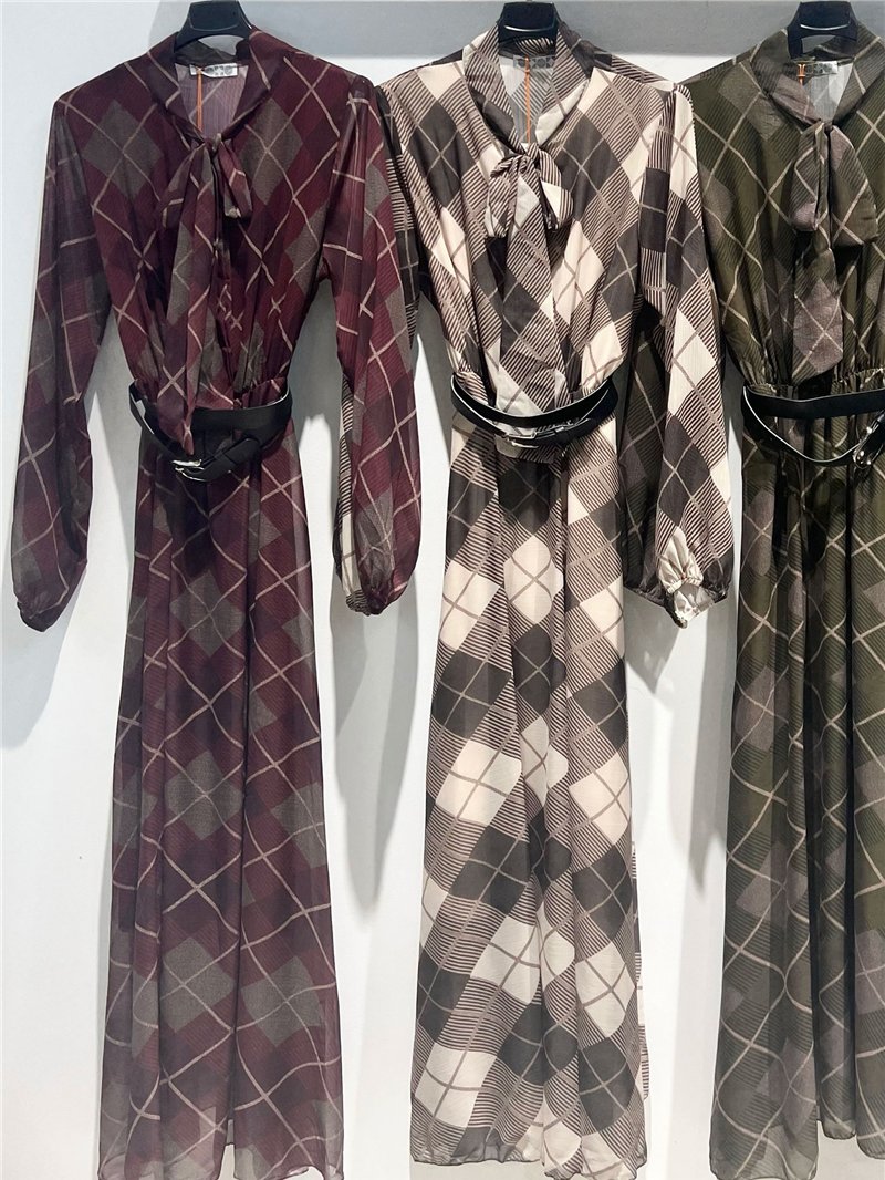 Detalles de vestido largo gasa cuadros lazo SP-5385