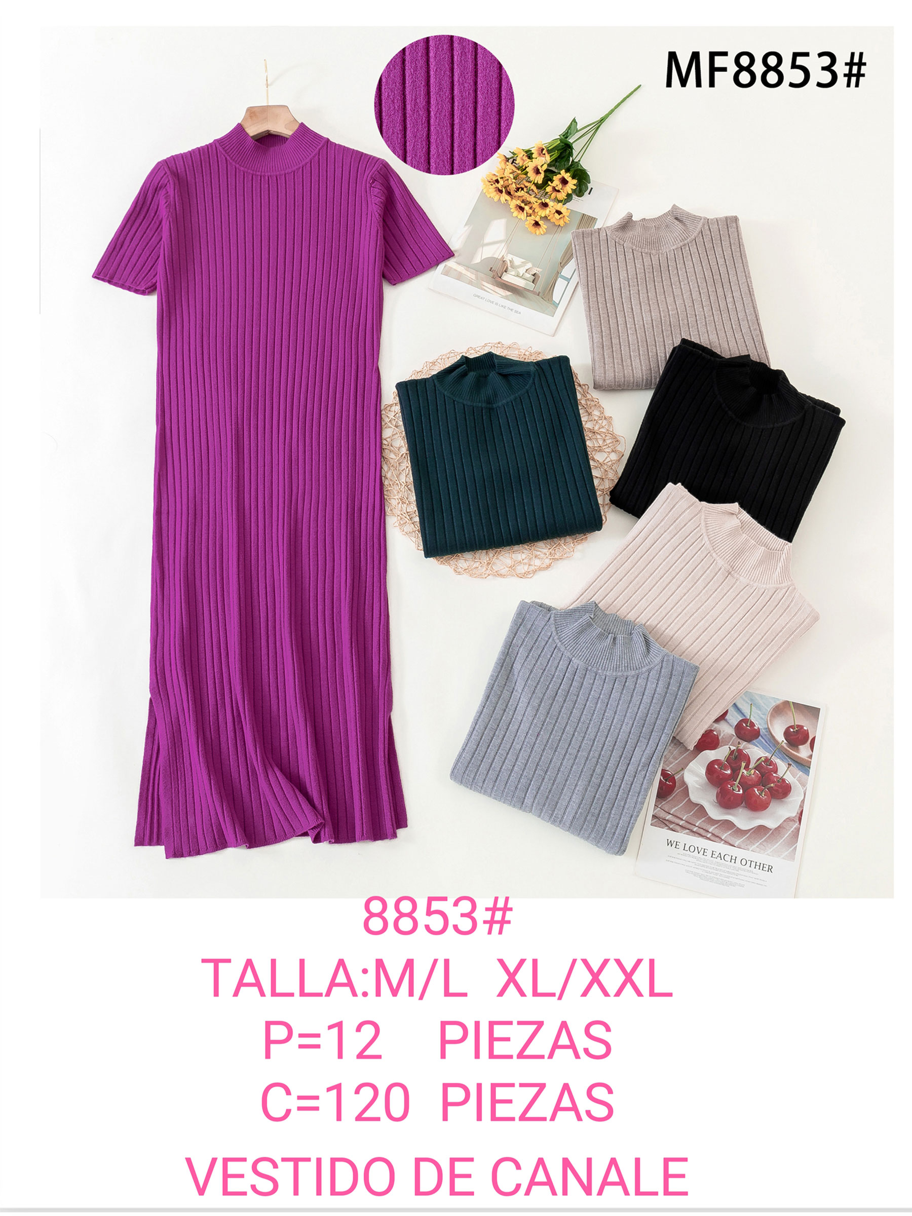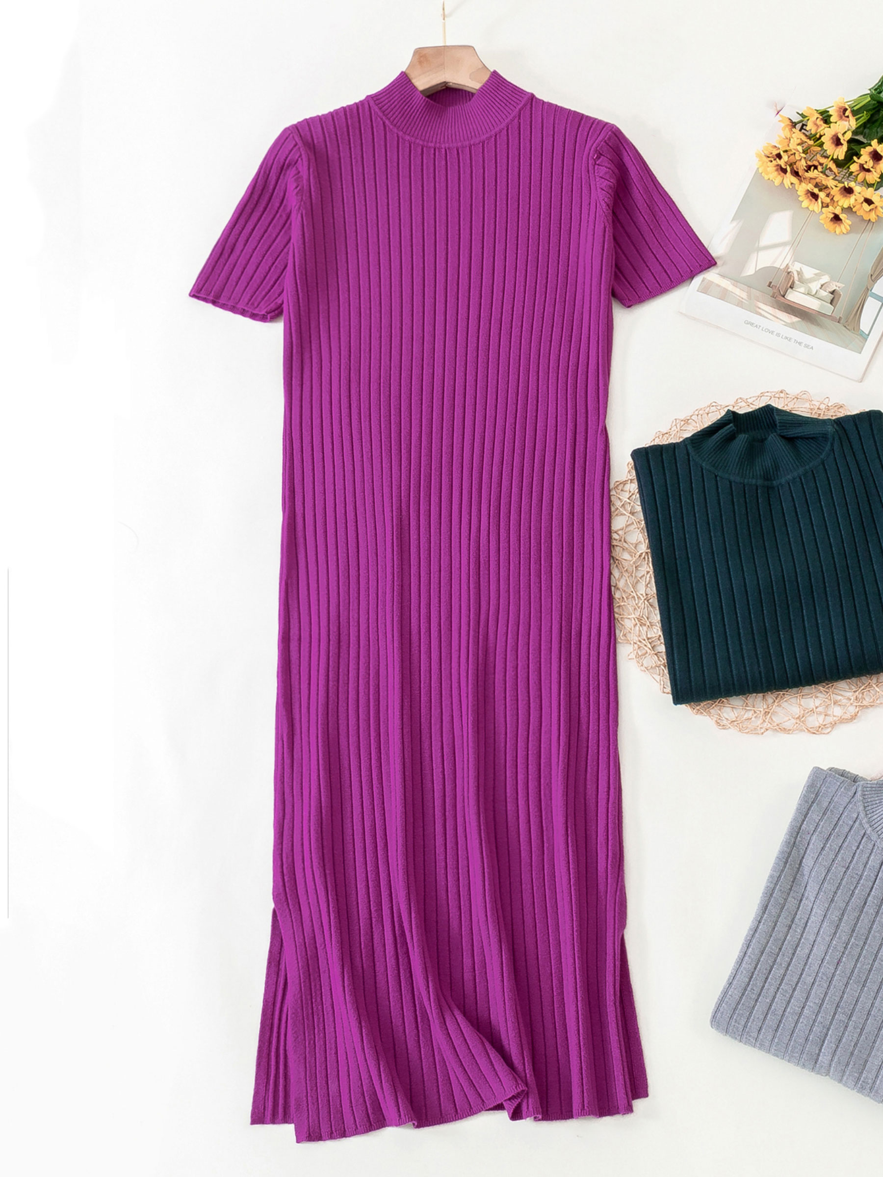 Detalles de vestido canalé aberturas manga corta cuello perkins FA-8853