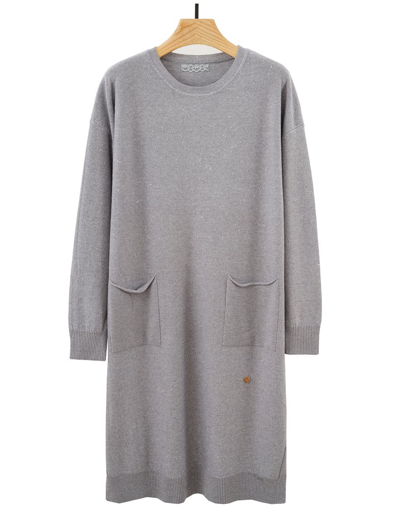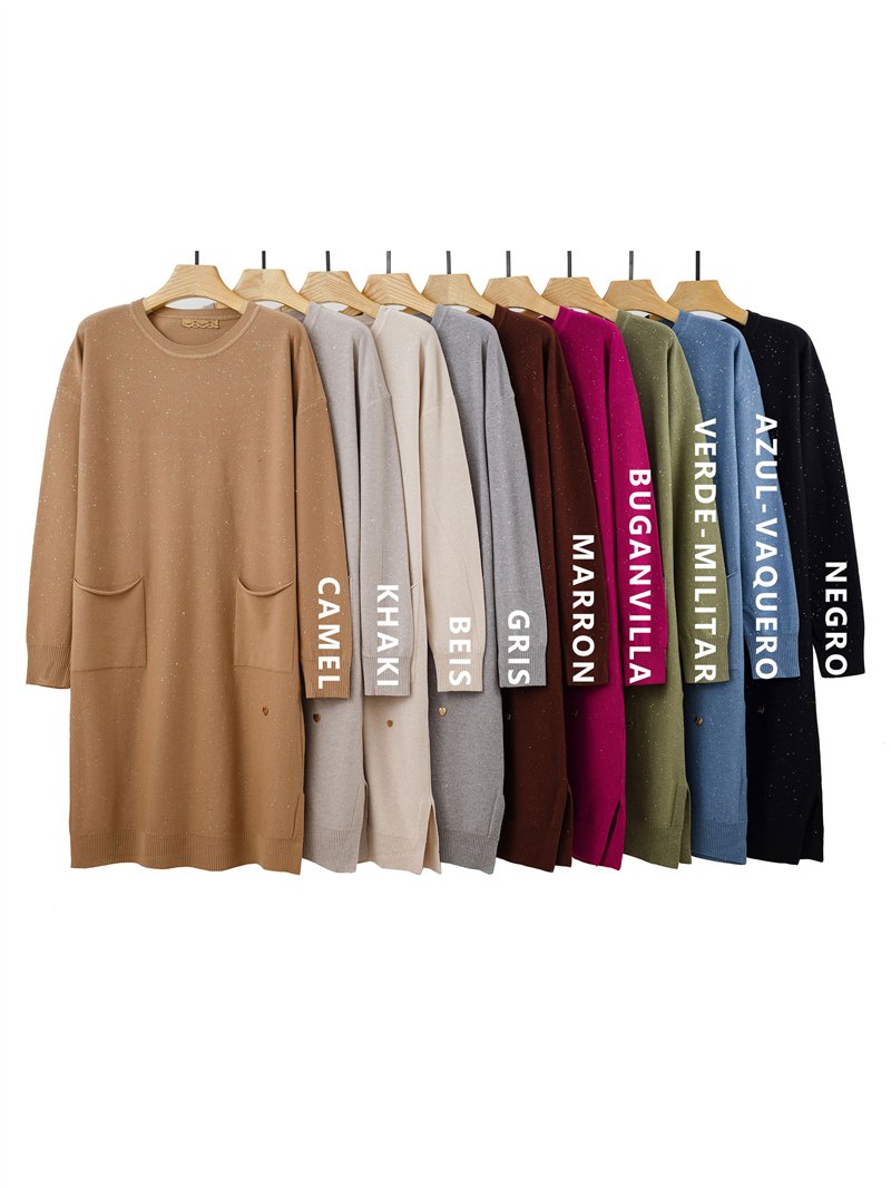 Detalles de vestido punto soft lentejuelas cuello pico ZD-ZD8059
