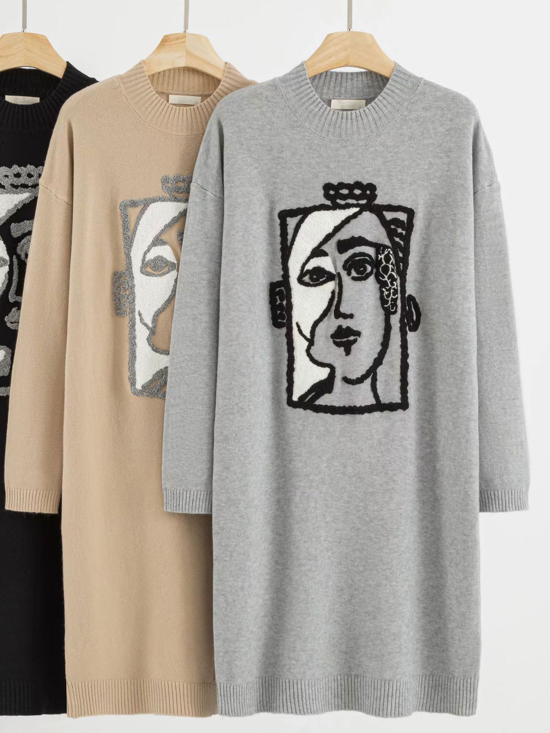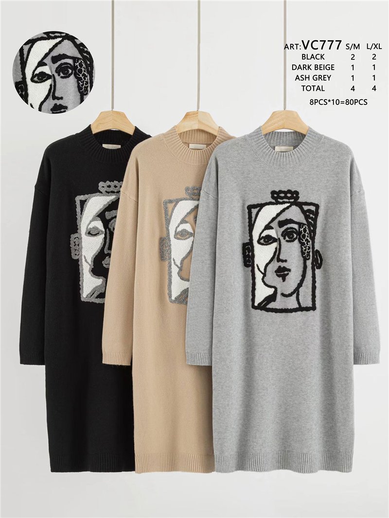Detalles de vestido de punto rostro abstracto LS-VC777