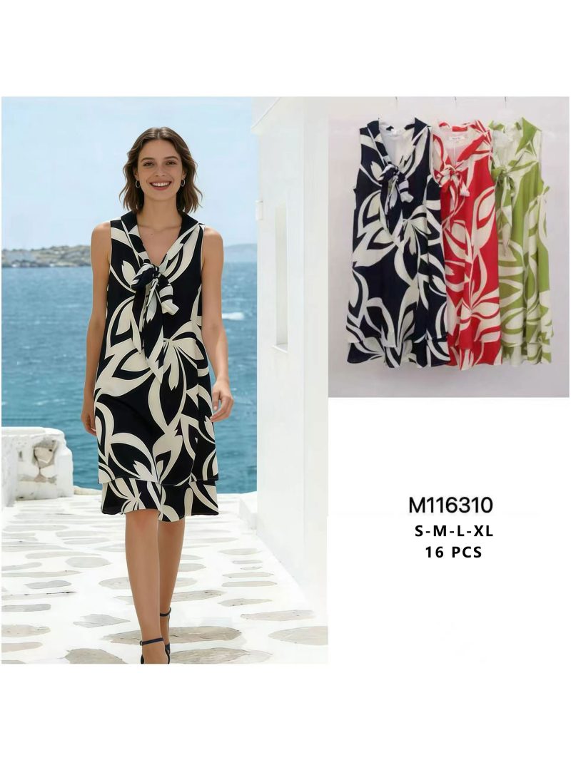 Vestido sin mangas lazo y estampado abstracto