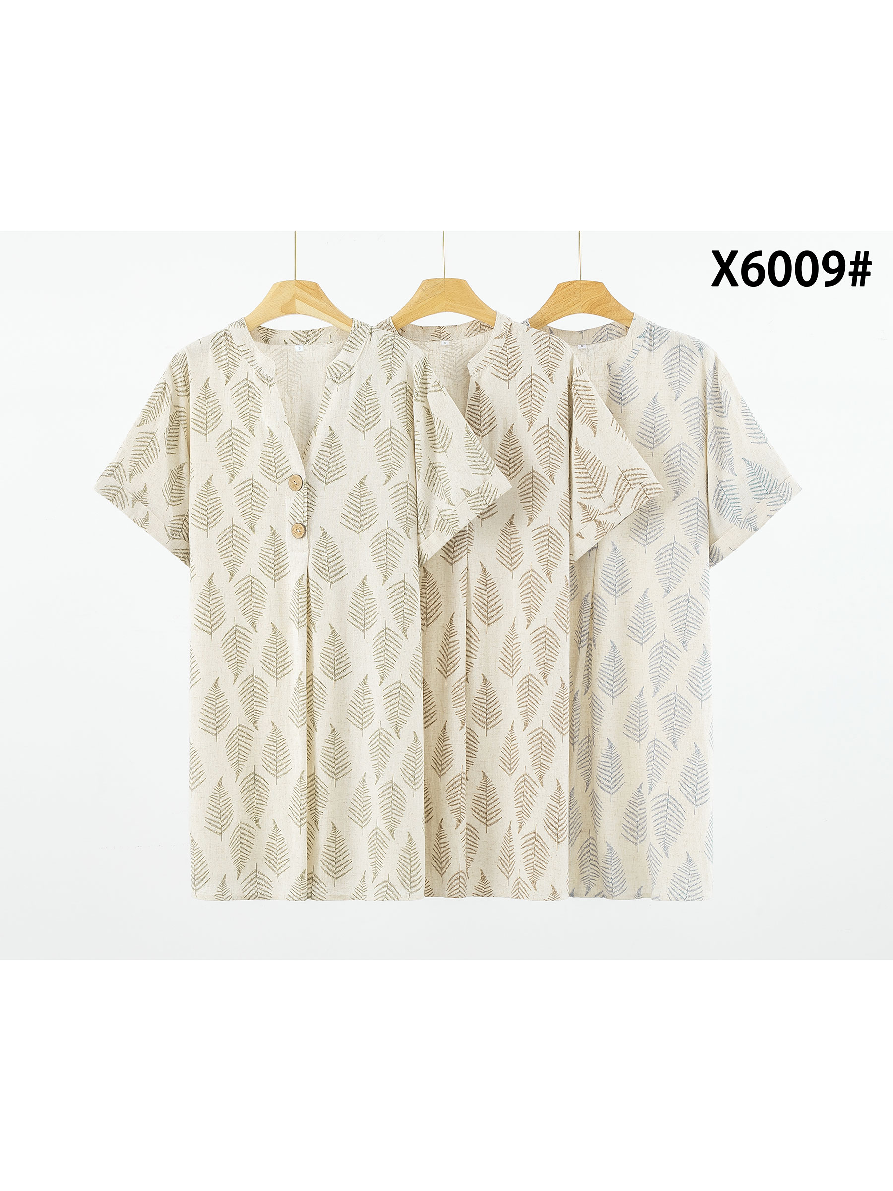 Vestido camisero efecto lino estampado hojas