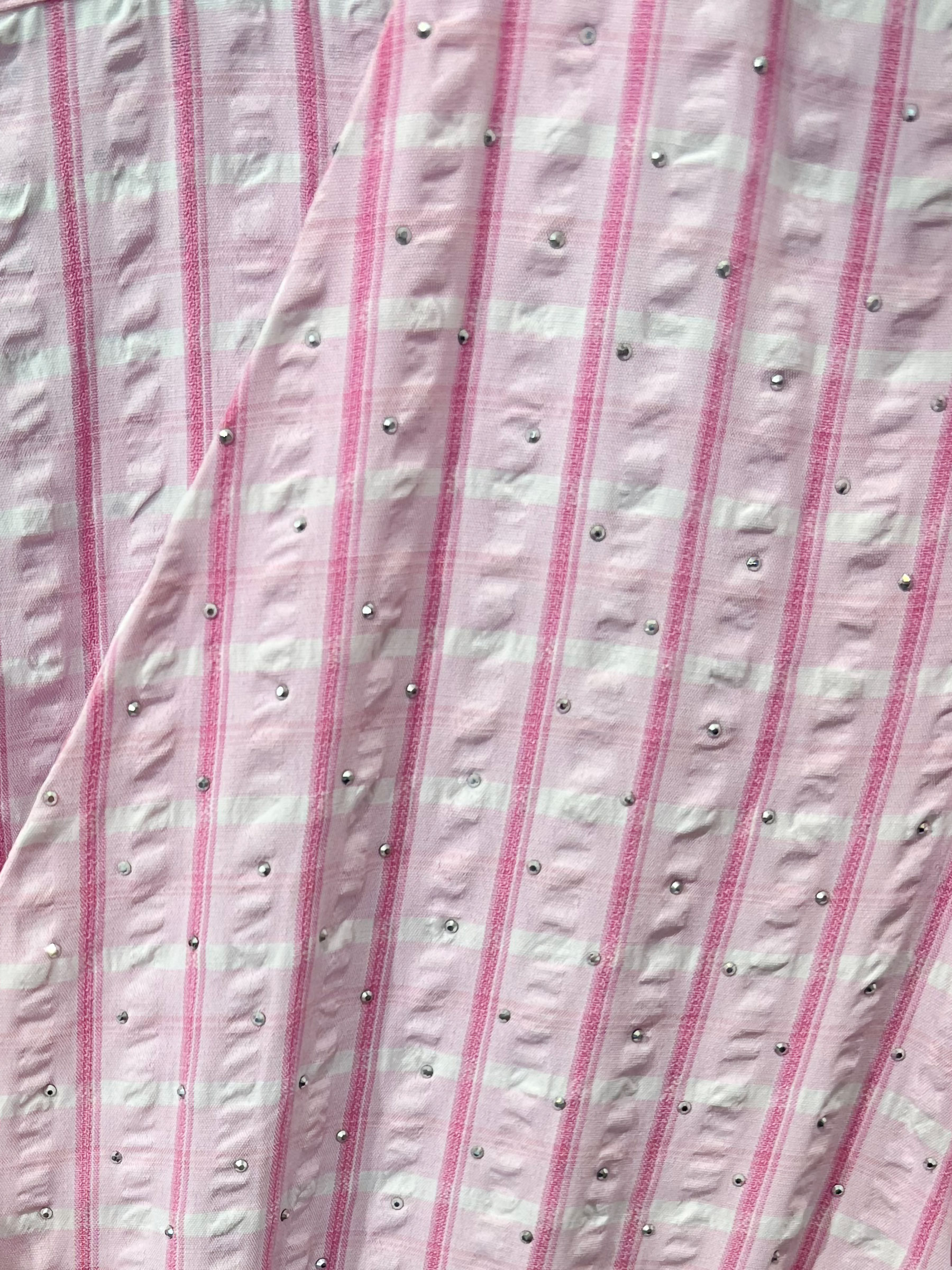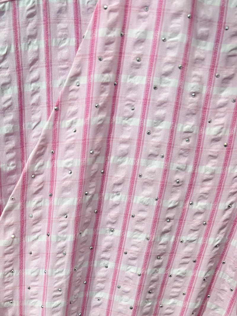 Vestido midi vichy con strass y manga volantes