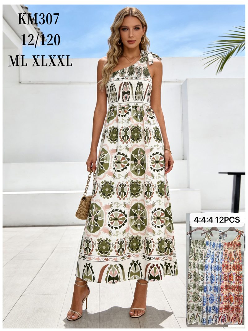 Vestido largo estampado frunces asimétrico
