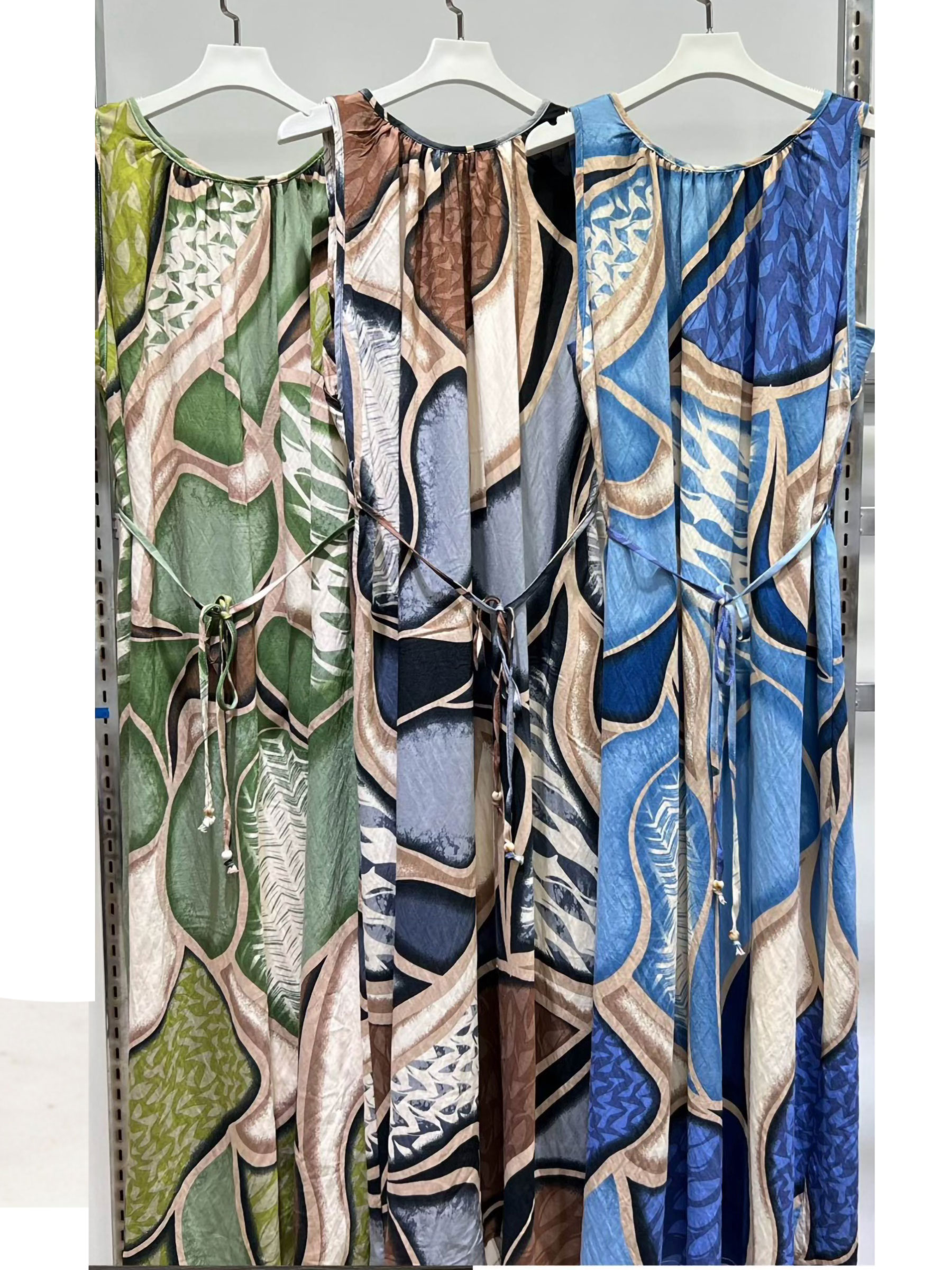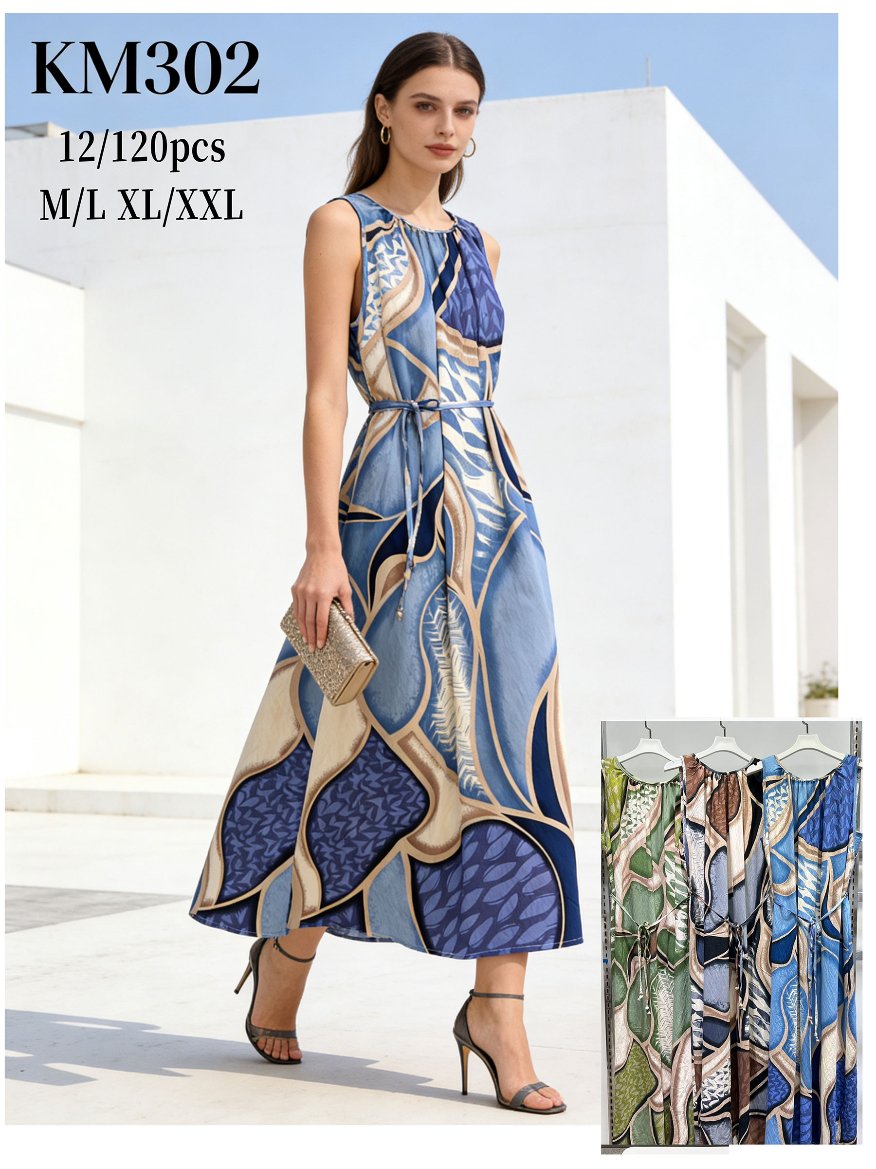 Vestido midi sin mangas estampado con cinturón