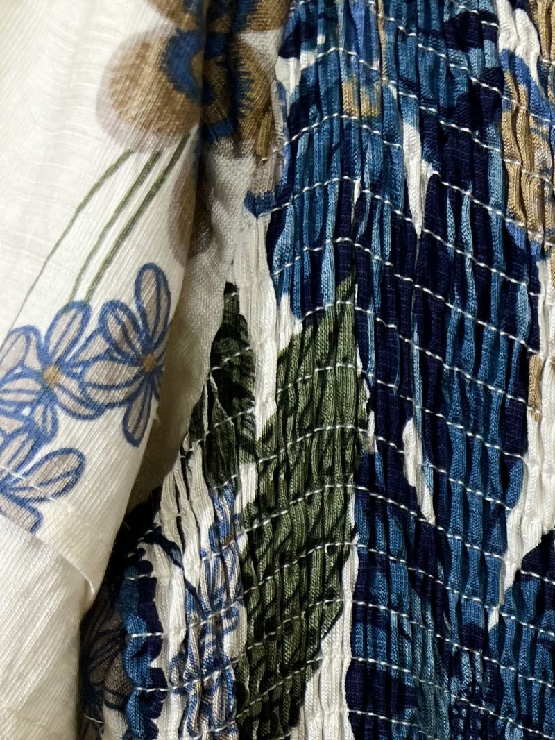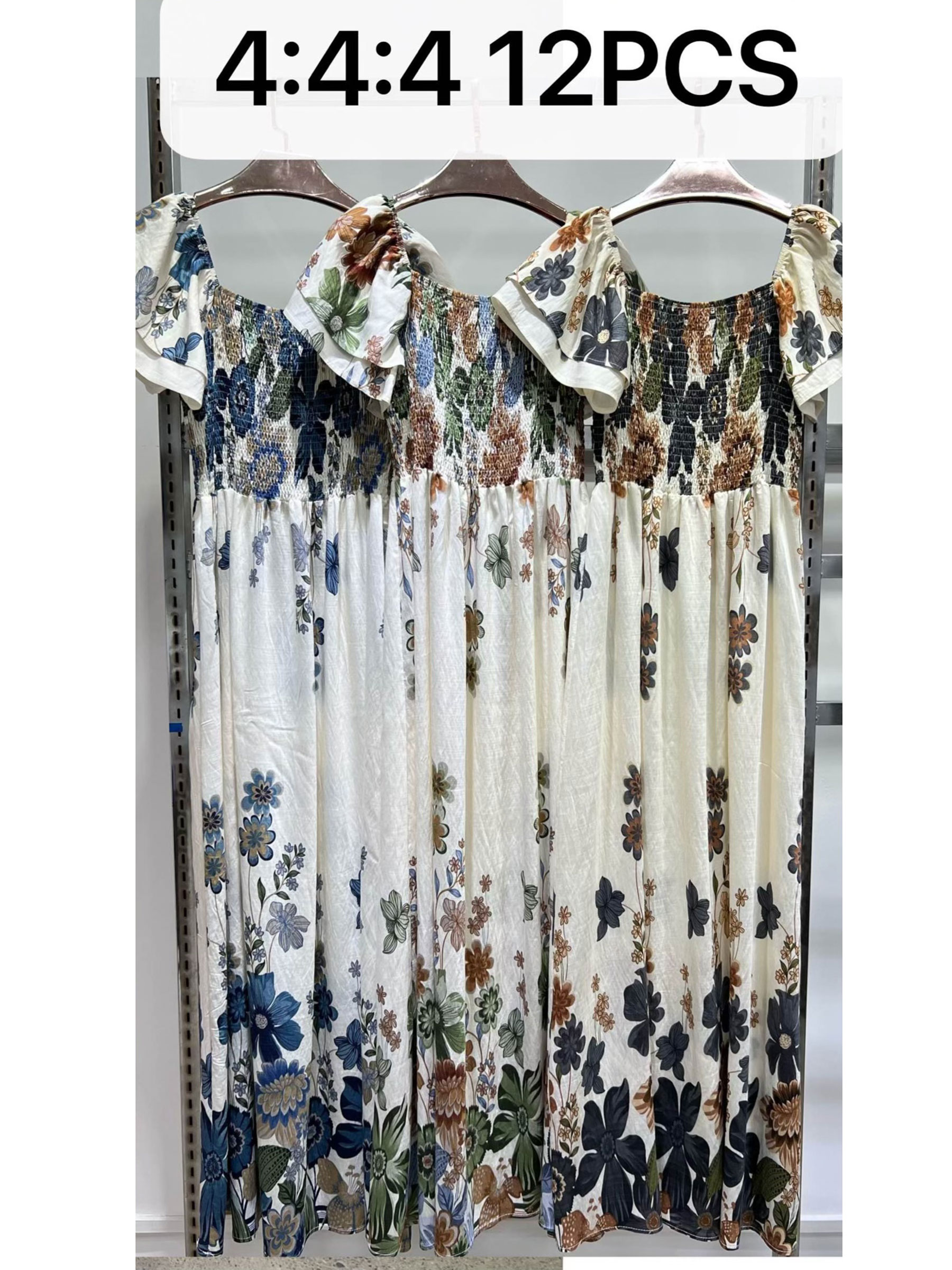 Vestido largo floral con cuerpo fruncido y mangas volante