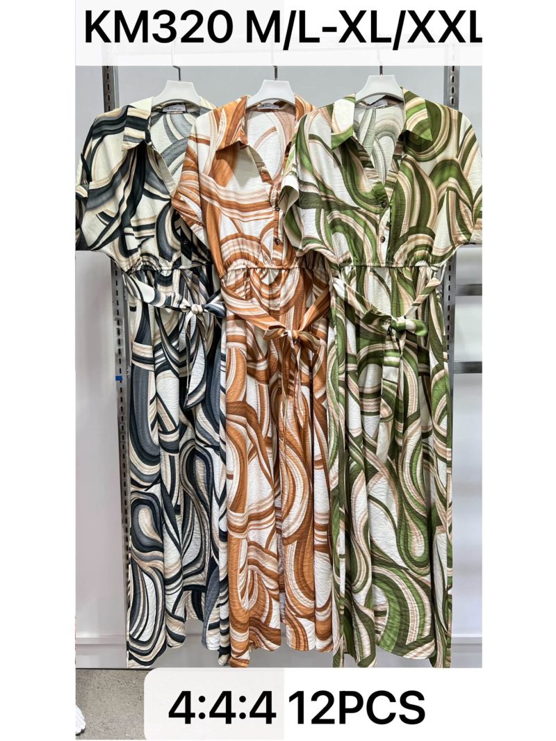 Vestido largo camisero estampado swirl con cinturón