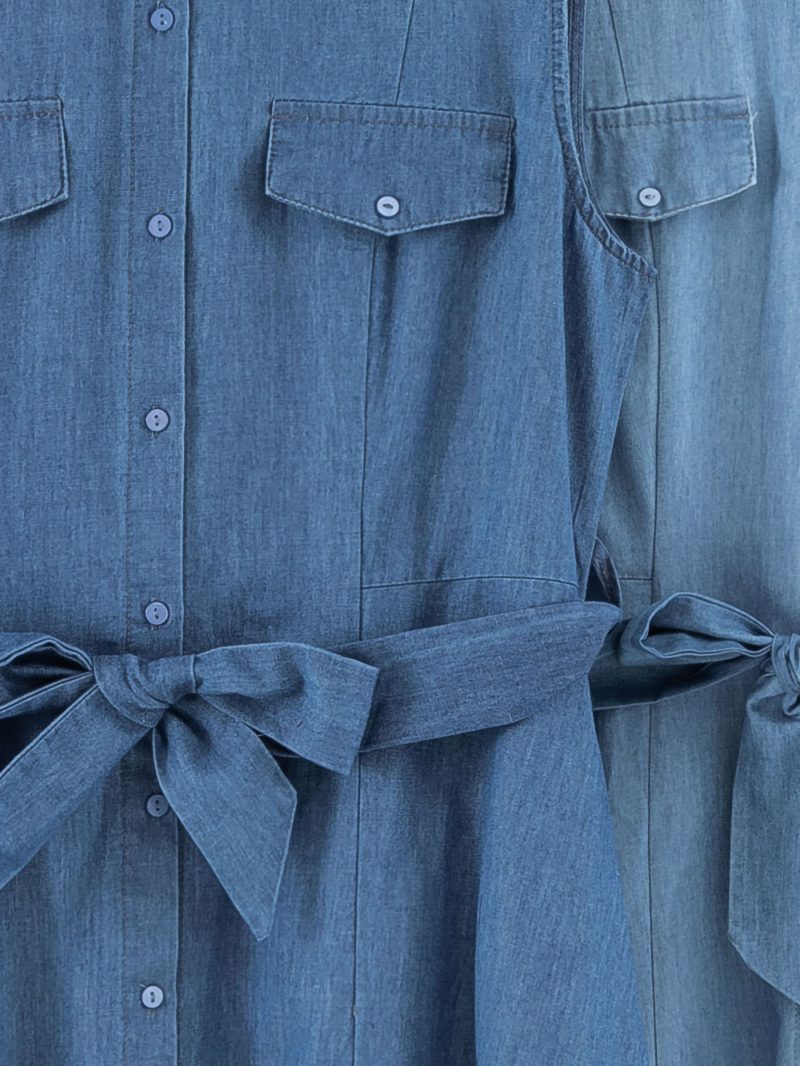 Vestido camisero midi símil denim sin mangas con cinturón