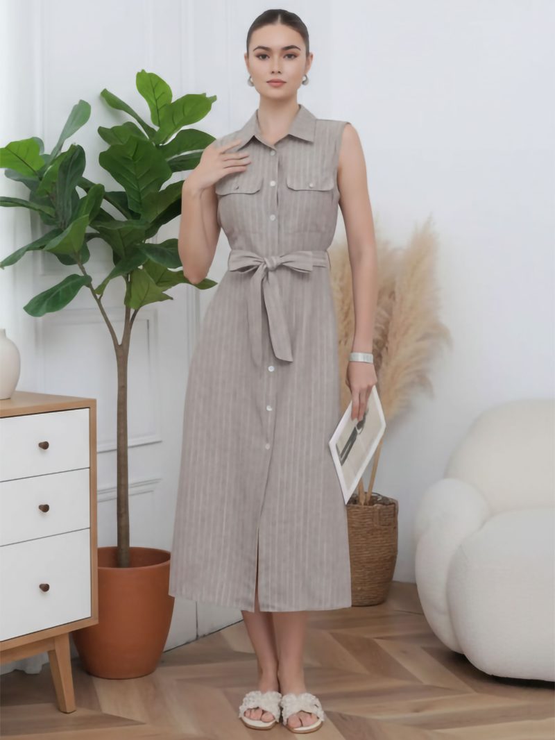 Vestido camisero midi de rayas con cinturón