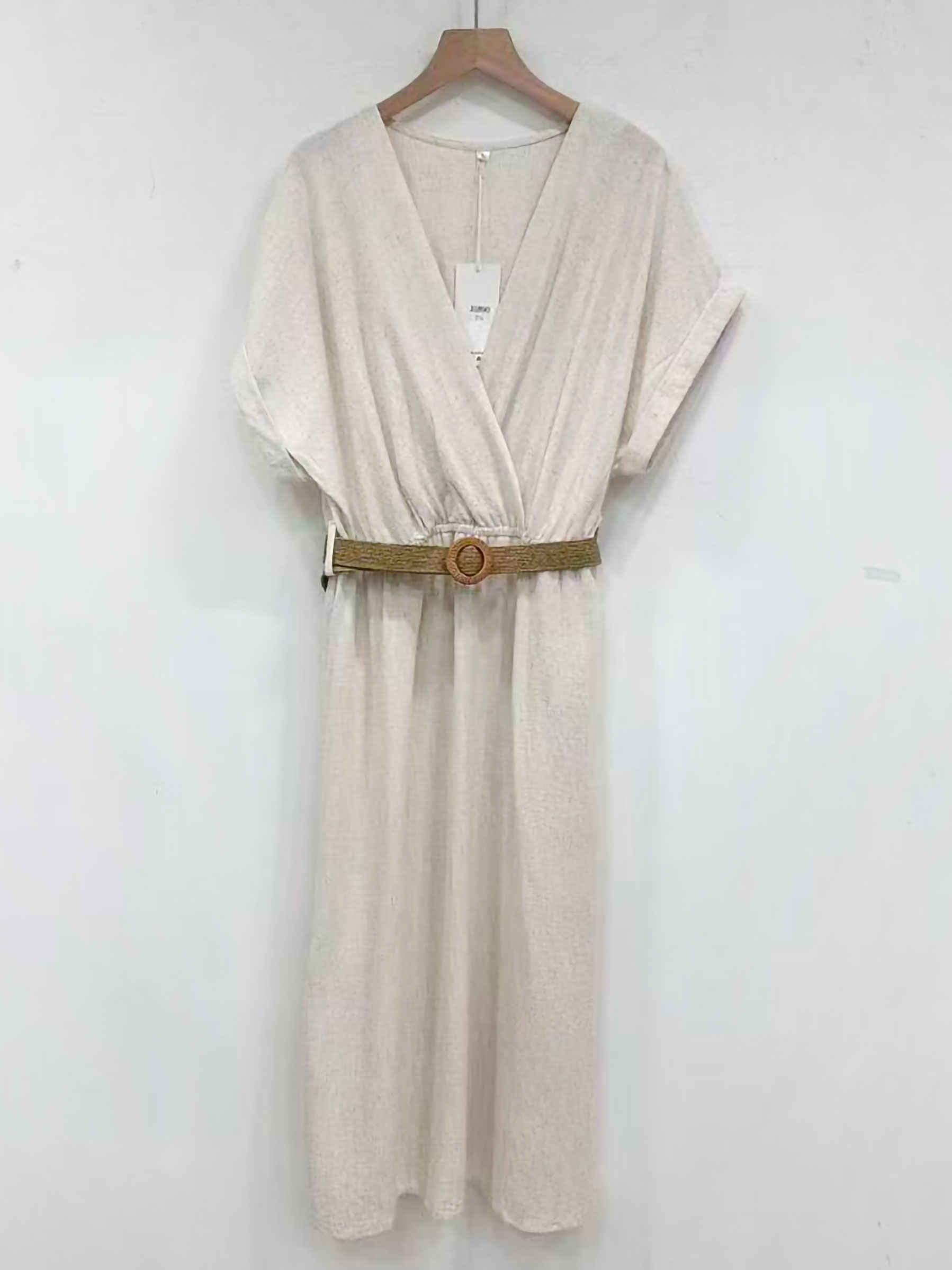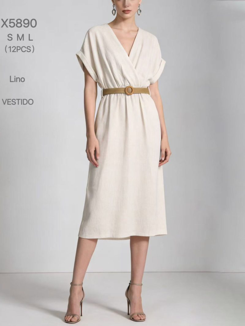 Vestido midi cruzado lino con cinturón