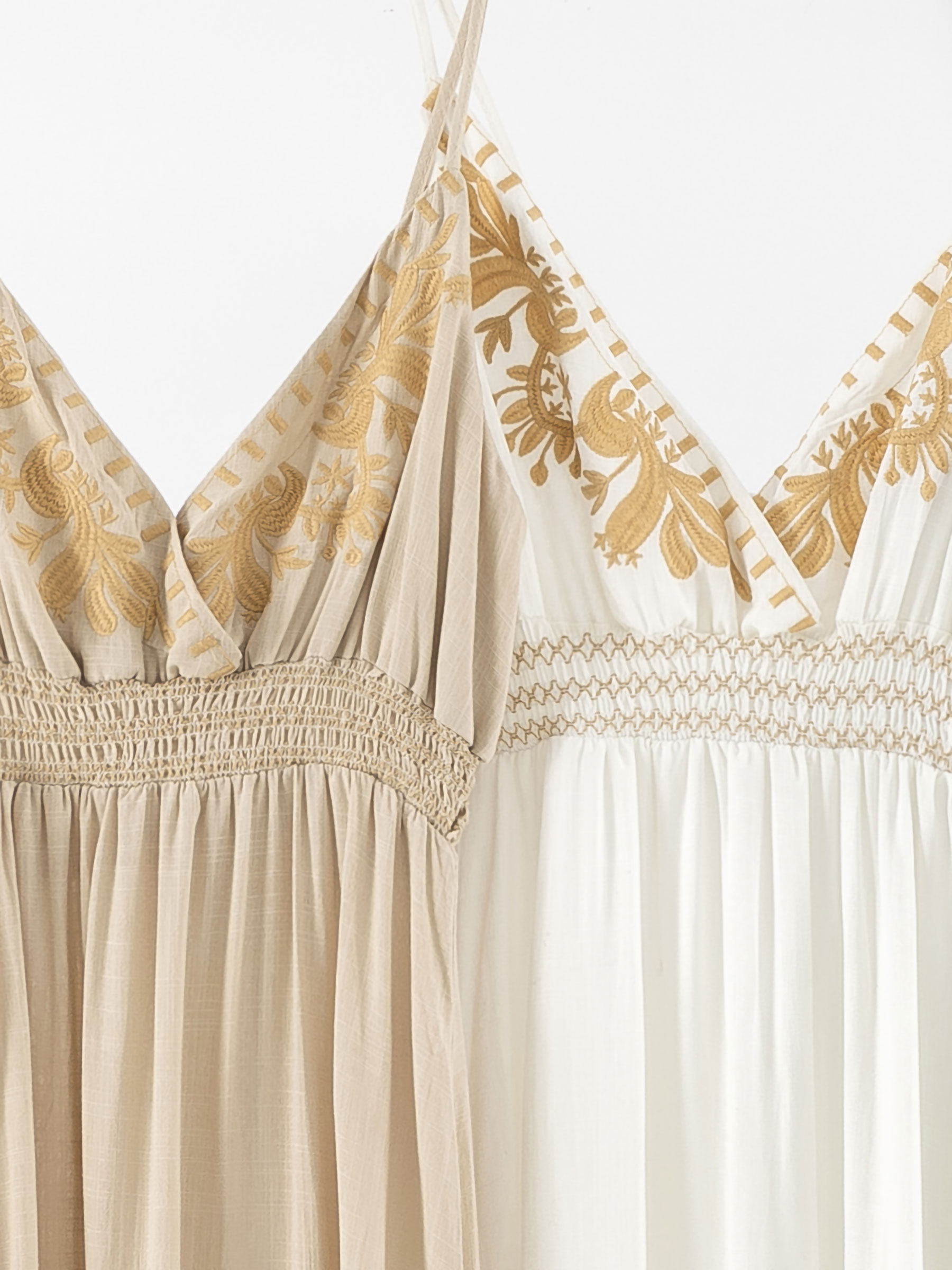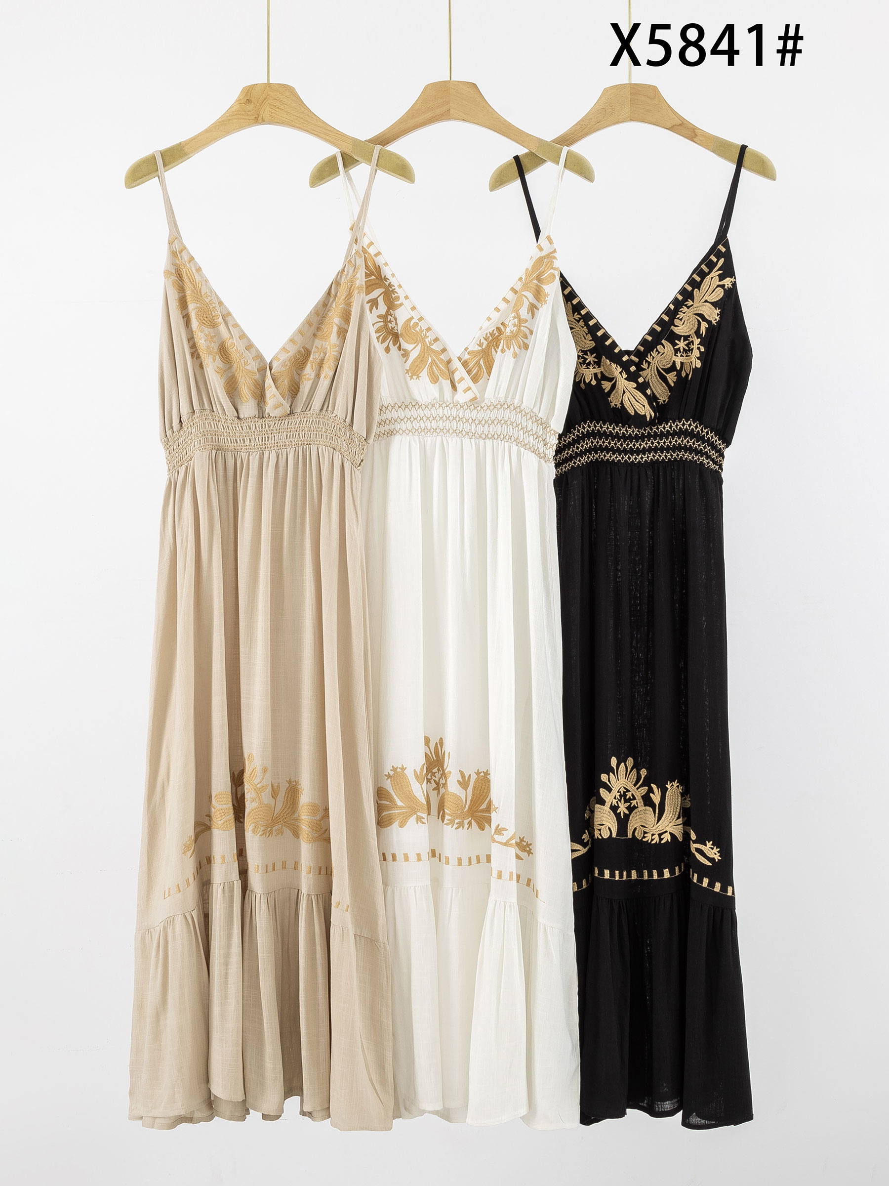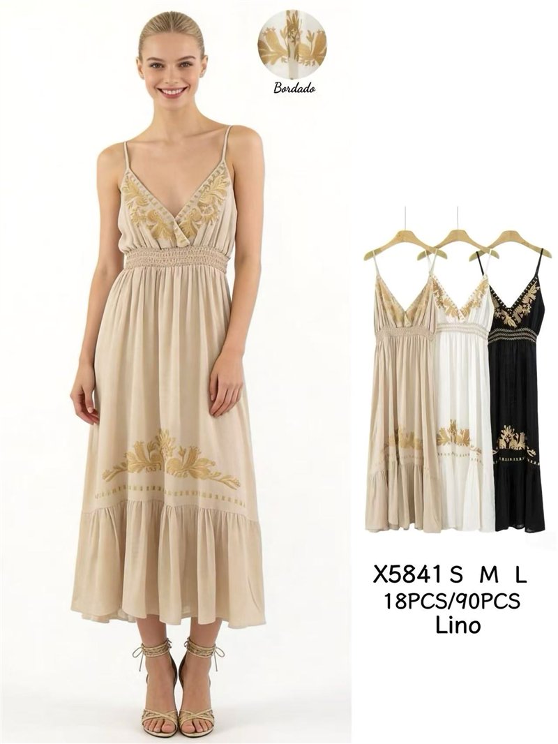 Nuevo Mín. 6 Vestidos Vestido largo cruzado con bordado étnico MF-18103 Tallas: M-L-XL.Colección: Primavera/Verano 2026. Ver precio
