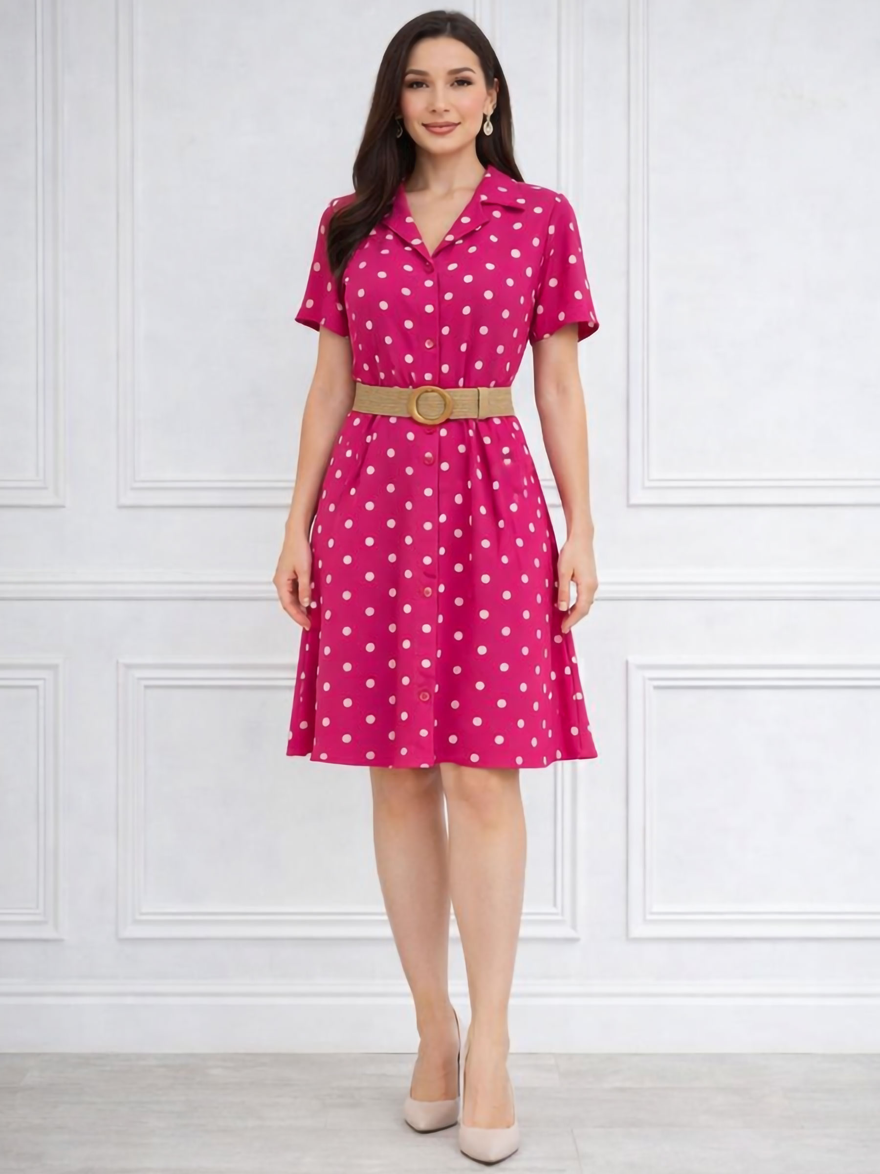 Nuevo Mín. 9 Vestidos Vestido camisero lino con lunares y flores DB-X5979 Tallas: S-M-L.Colección: Primavera/Verano 2026. Ver precio