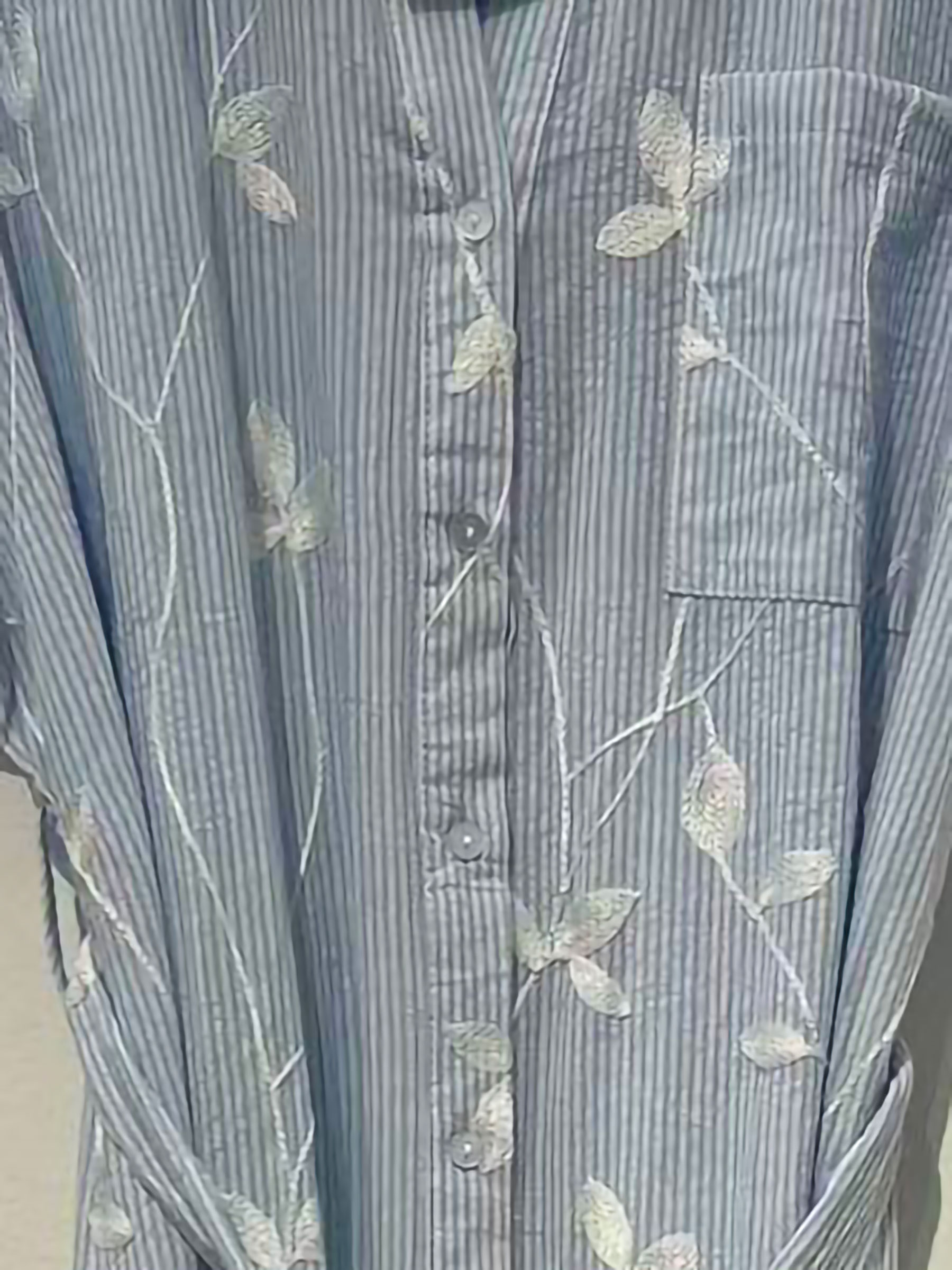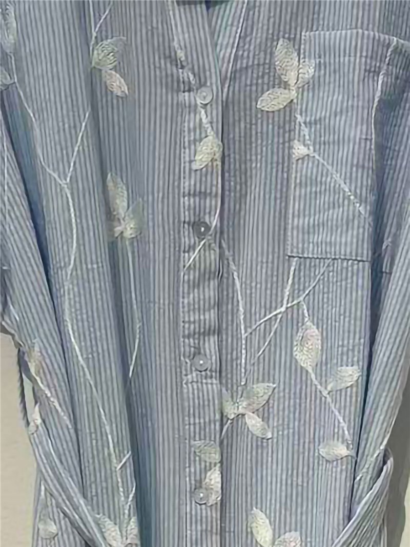 Vestido camisero rayas bordado hojas con bolsillo Vestido camisero rayas bordado hojas con bolsillo Vestido camisero rayas bordado hojas con bolsillo