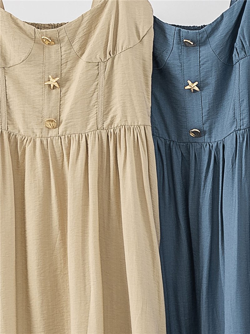 Vestido midi de escote corazón con botones marinos