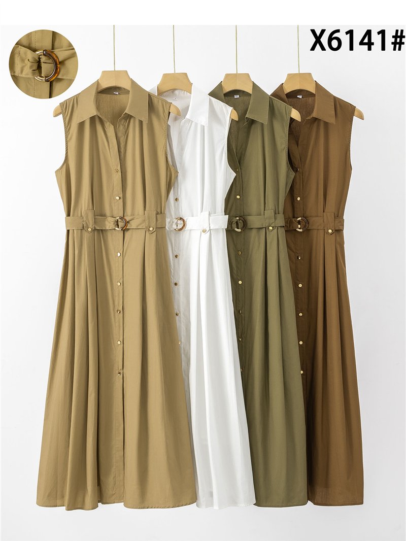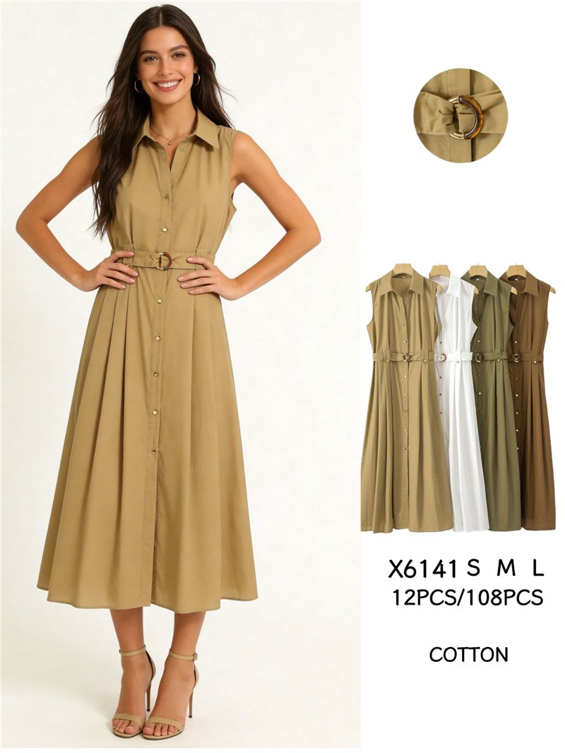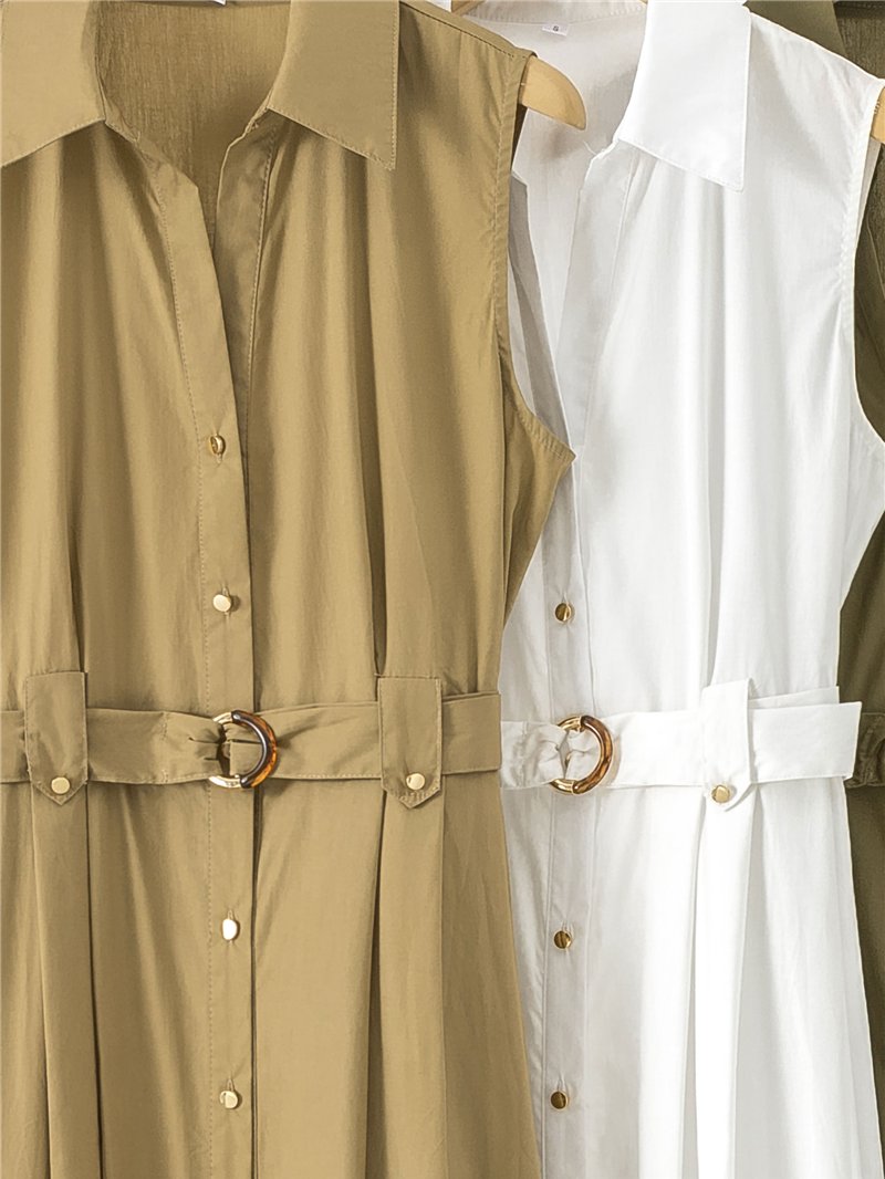 Vestido camisero midi sin mangas con cinturón hebilla