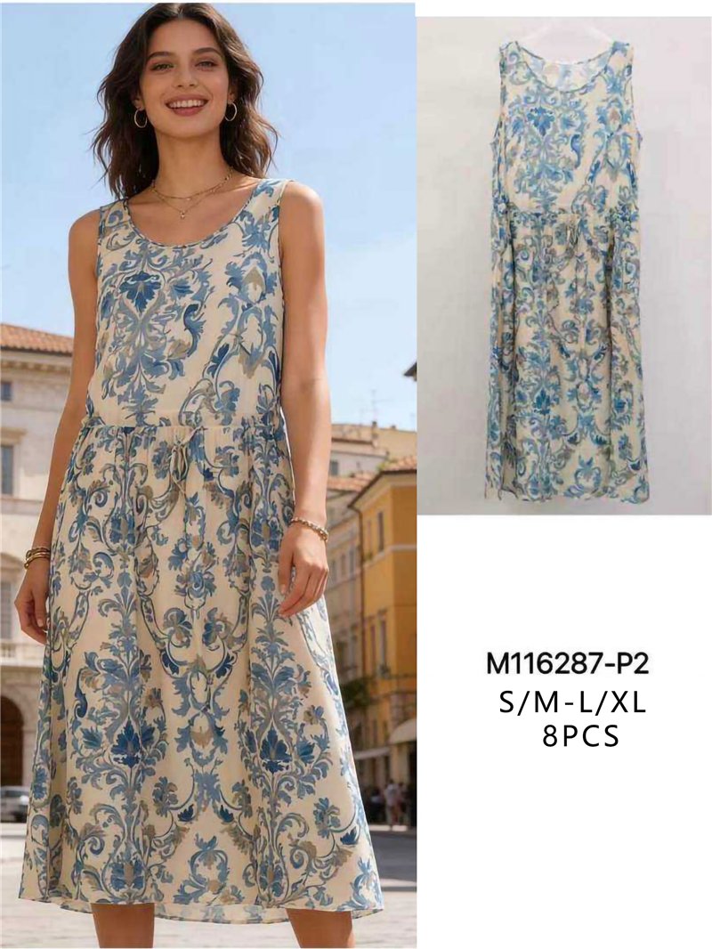 Vestido midi estampado ornamental sin mangas