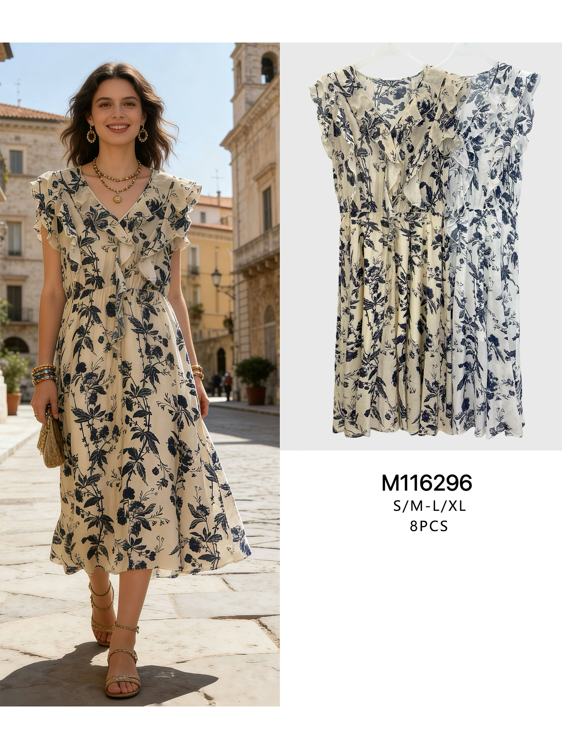 Vestido midi estampado floral con volantes
