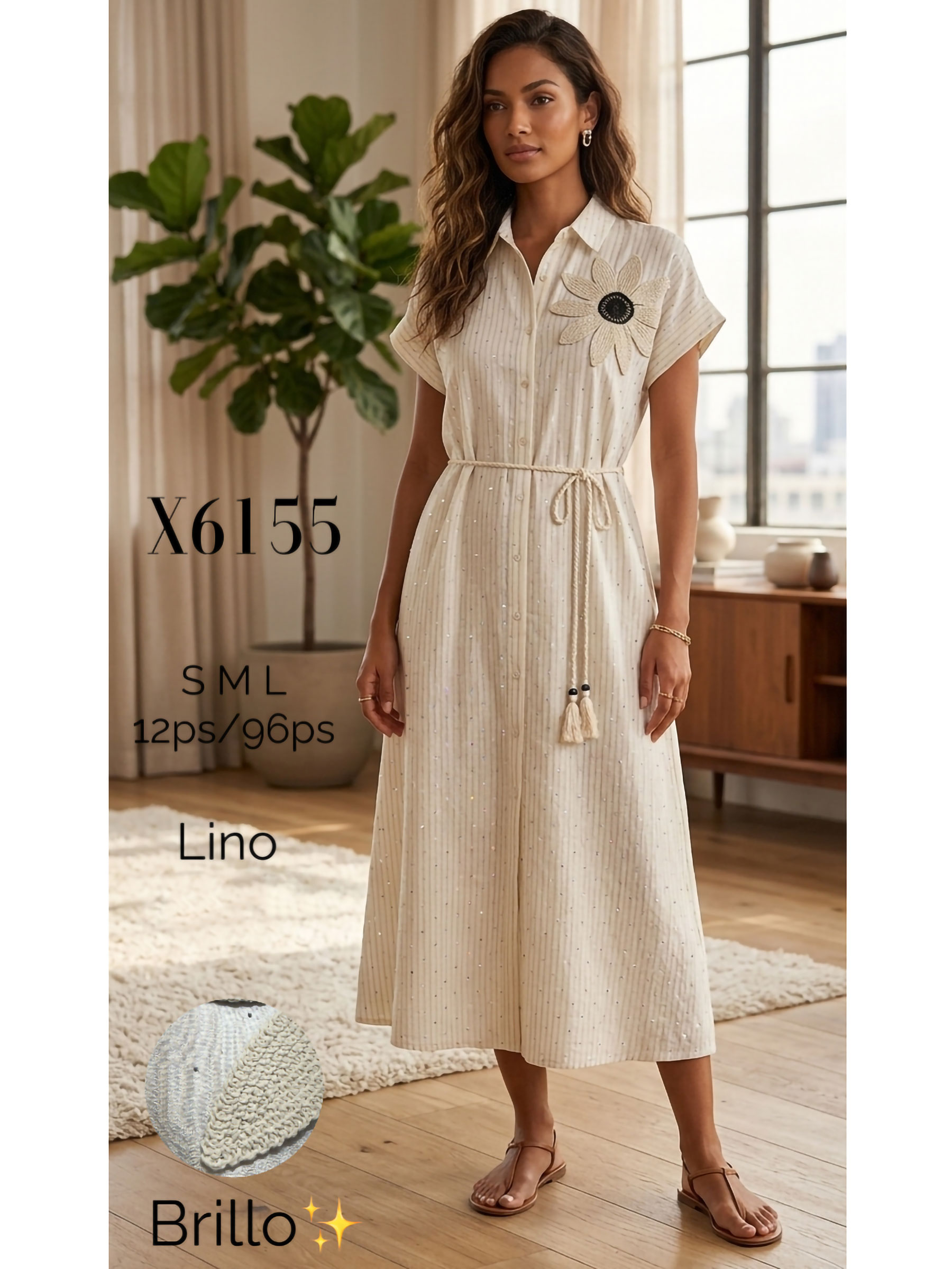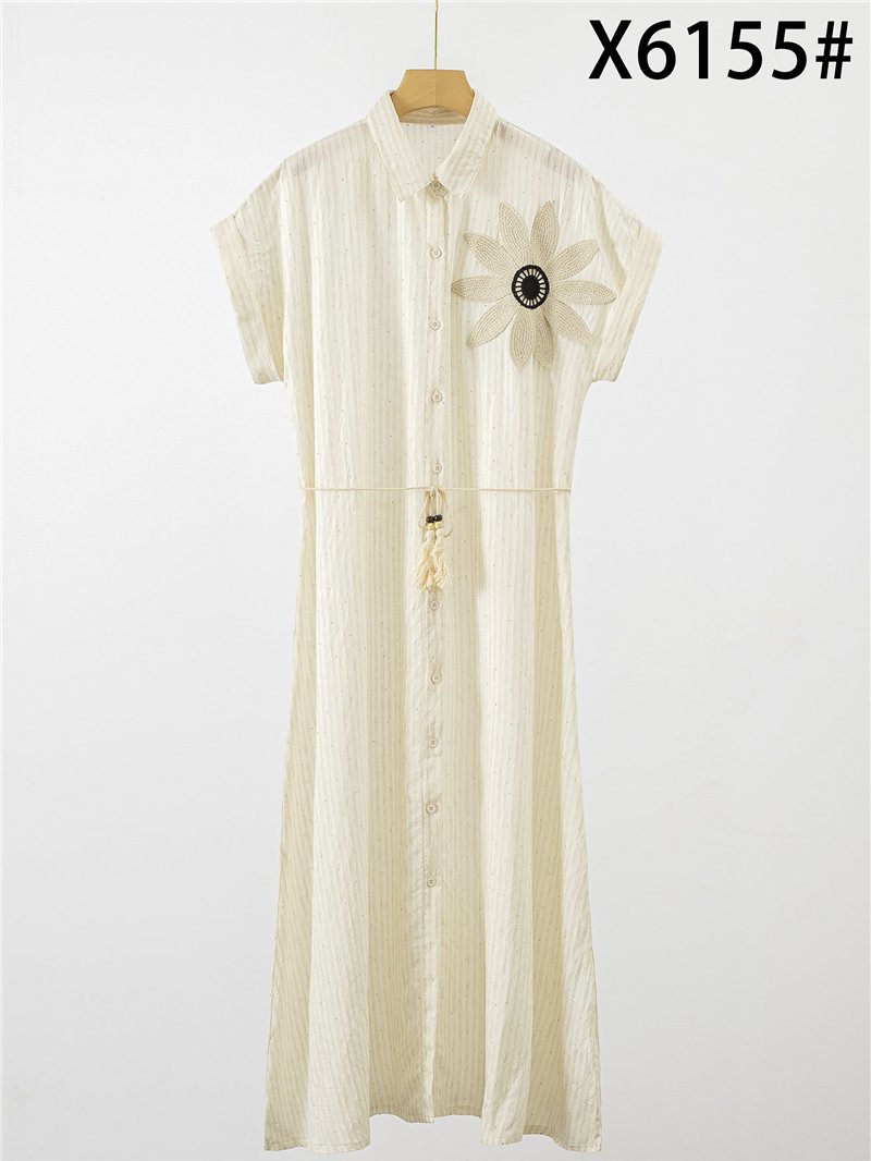 Vestido camisero con strass y flor de crochet