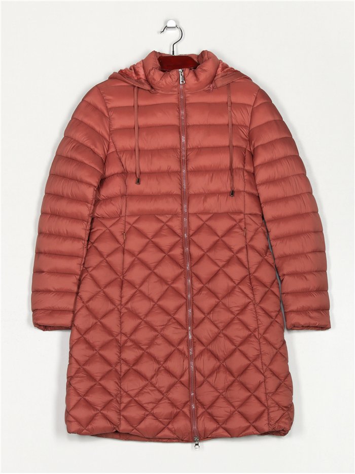 Anorak long au-dessus du genou. Rembourré. Poches latérales avec fermetures éclair invisibles. Finition intérieure effet peluche assorti. Capuche amovible. Col montant. Manches longues. Fermeture avec fermeture éclair centrale.