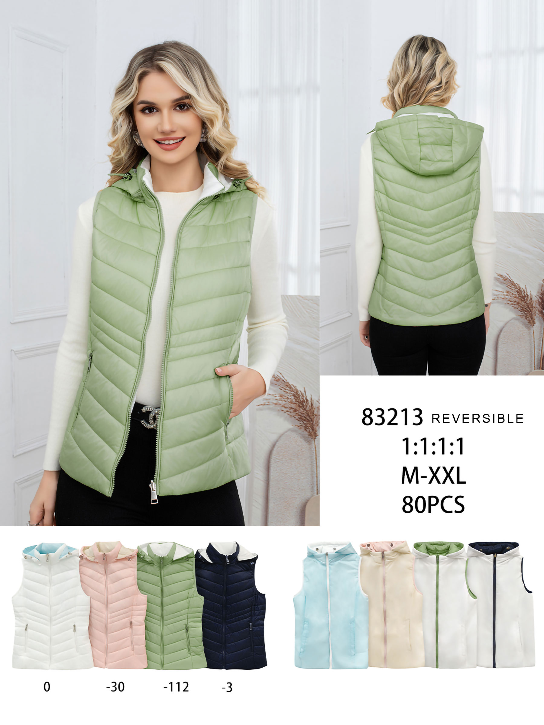 Détails de gilet matelassé léger réversible avec capuche MF-AF-83213