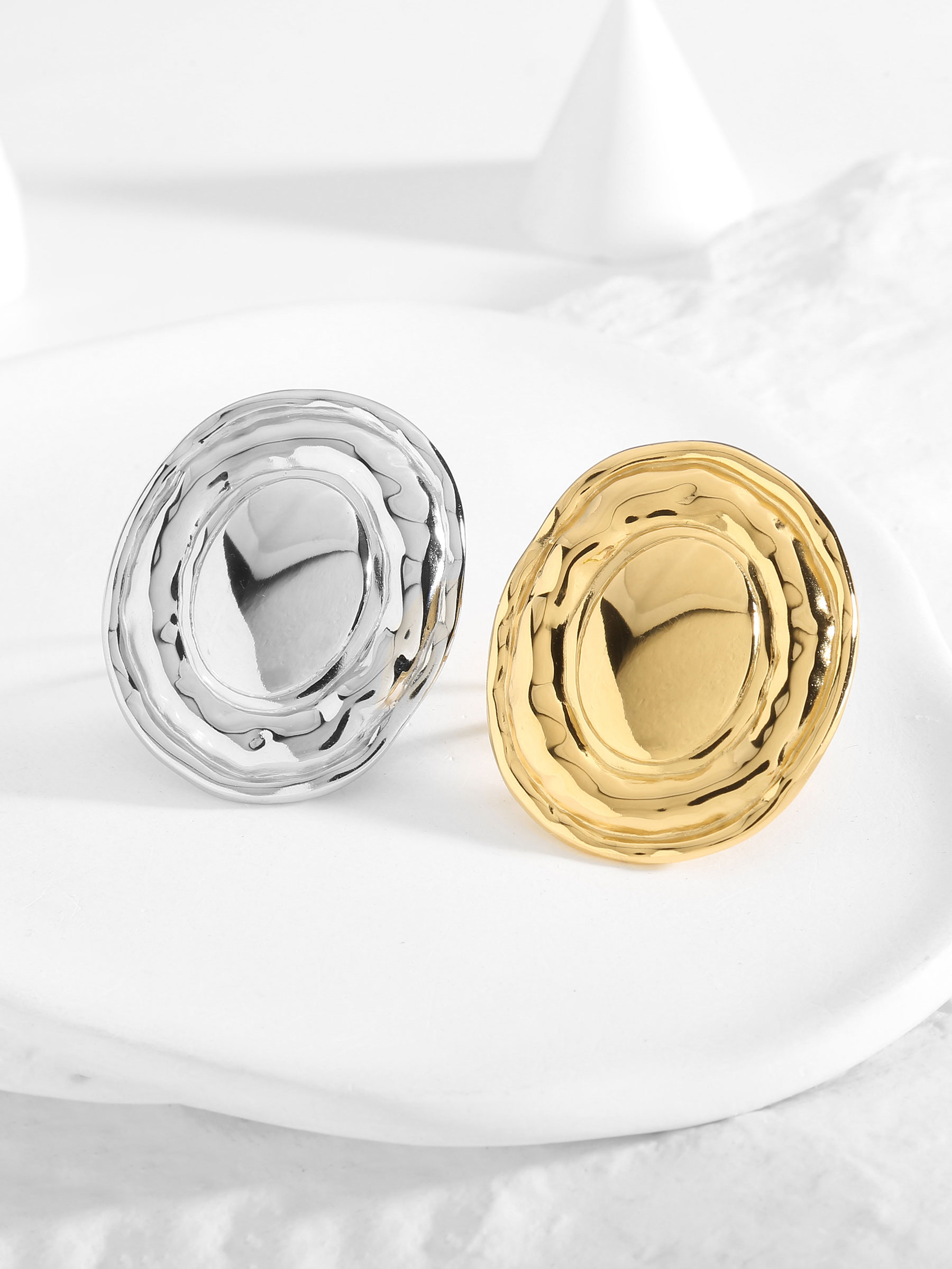 Détails de bague ronde effet martelé - acier inoxydable BS-PJ0239-PJ0240