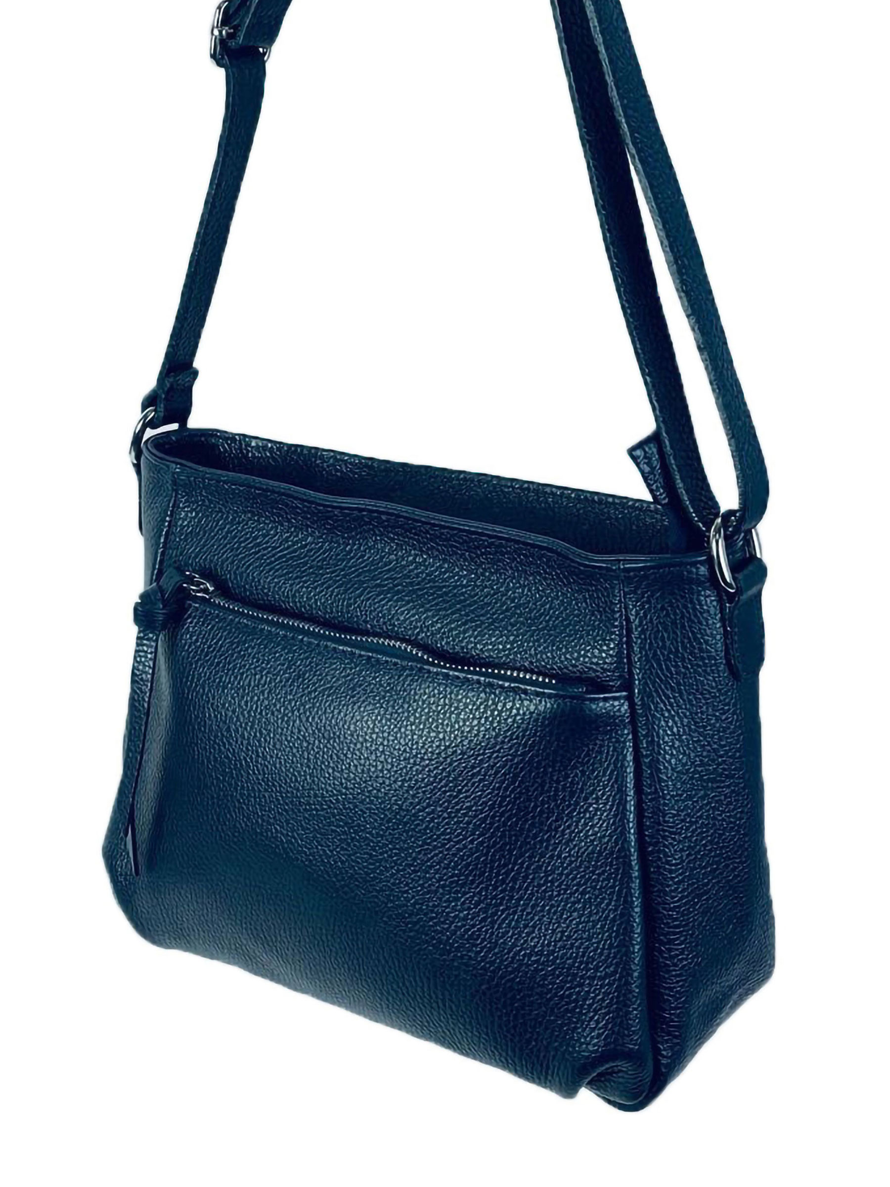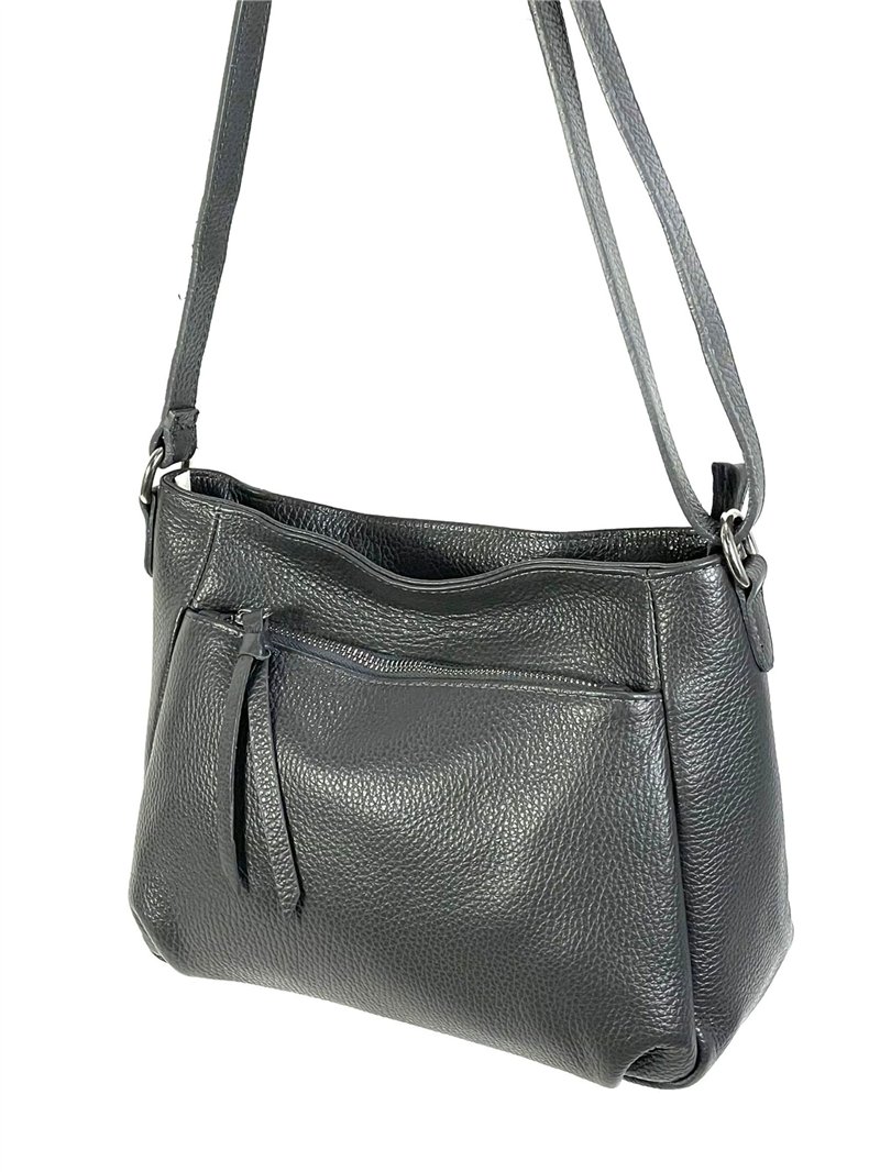 Sac bandoulière en cuir avec poches extérieures et fermeture à glissière