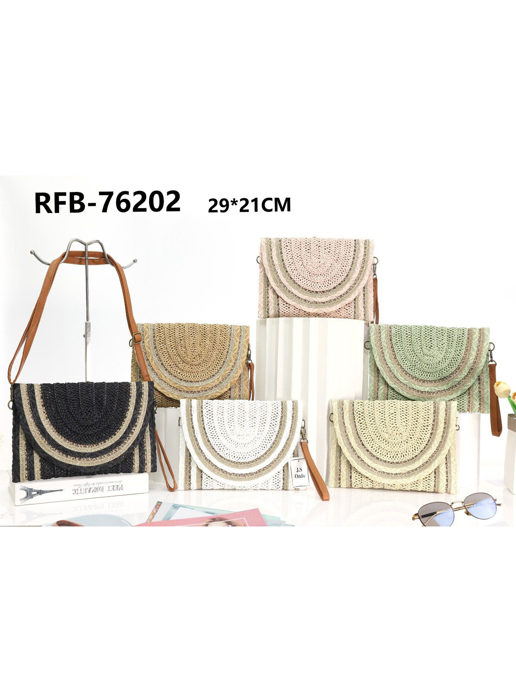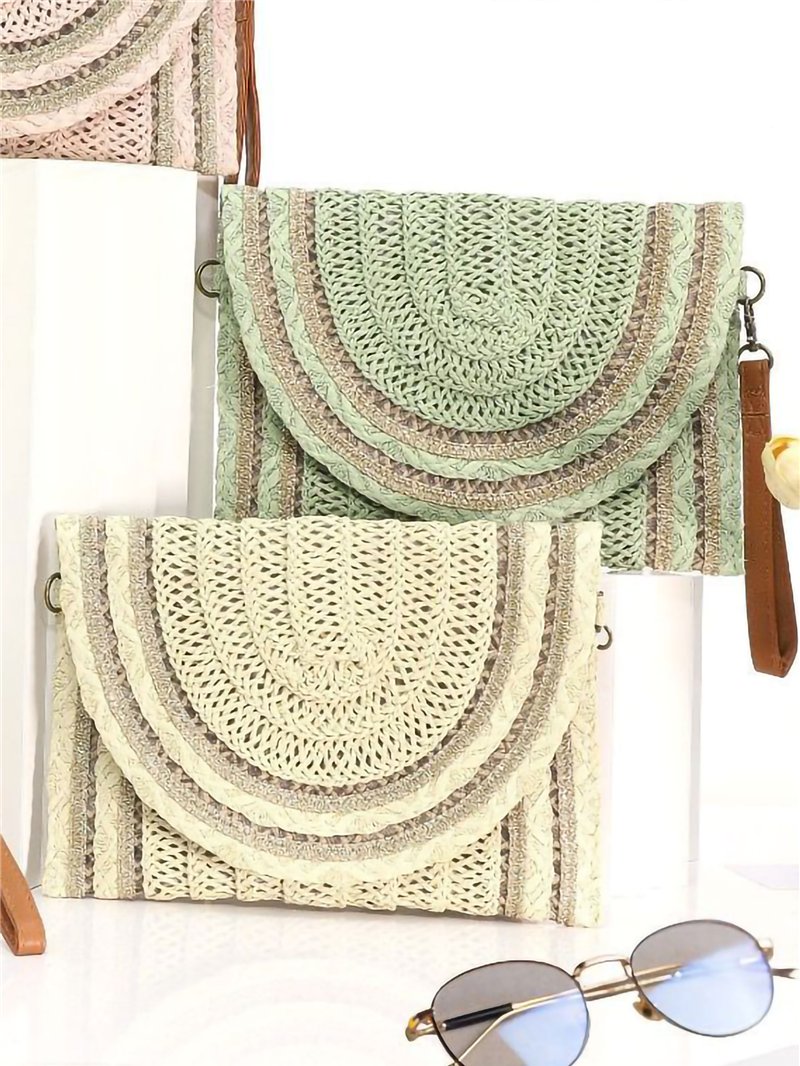Sac bandoulière en raphia avec rabat semi-circulaire
