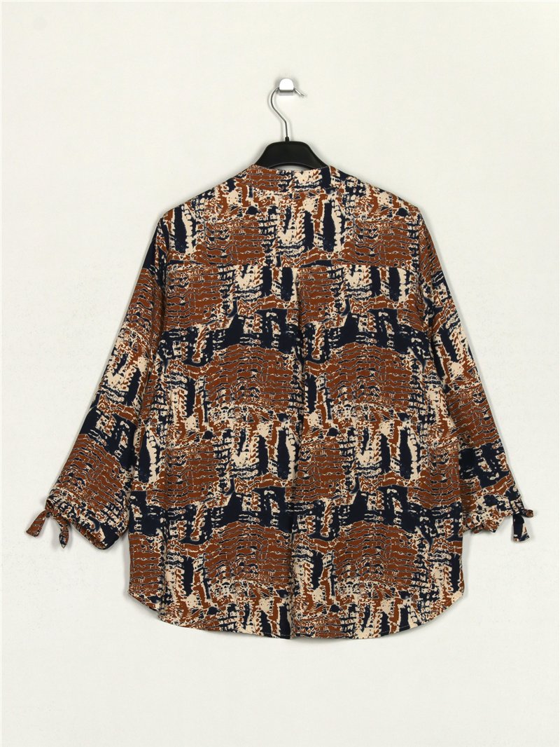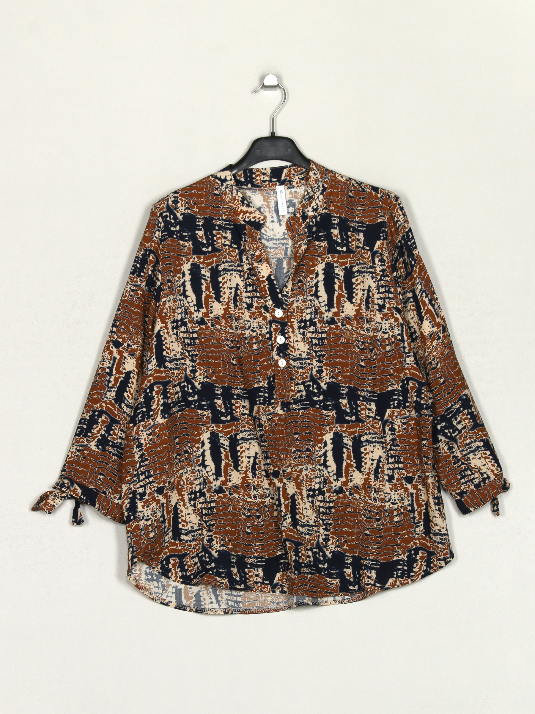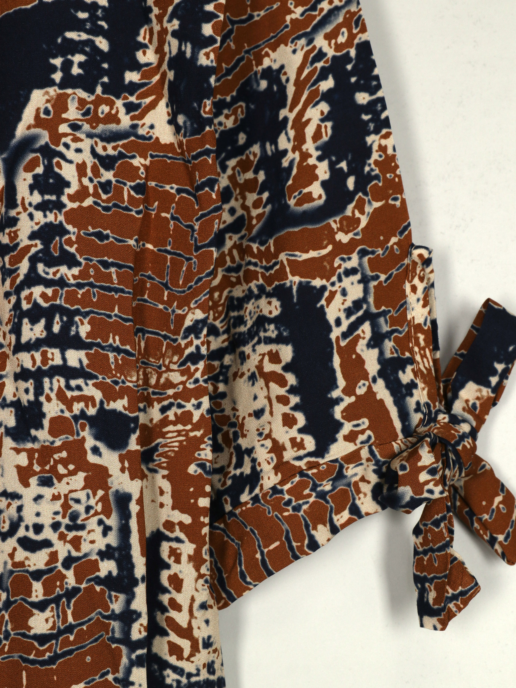 Détails de chemisier imprimé avec manches à nœuds T1055-27765-3