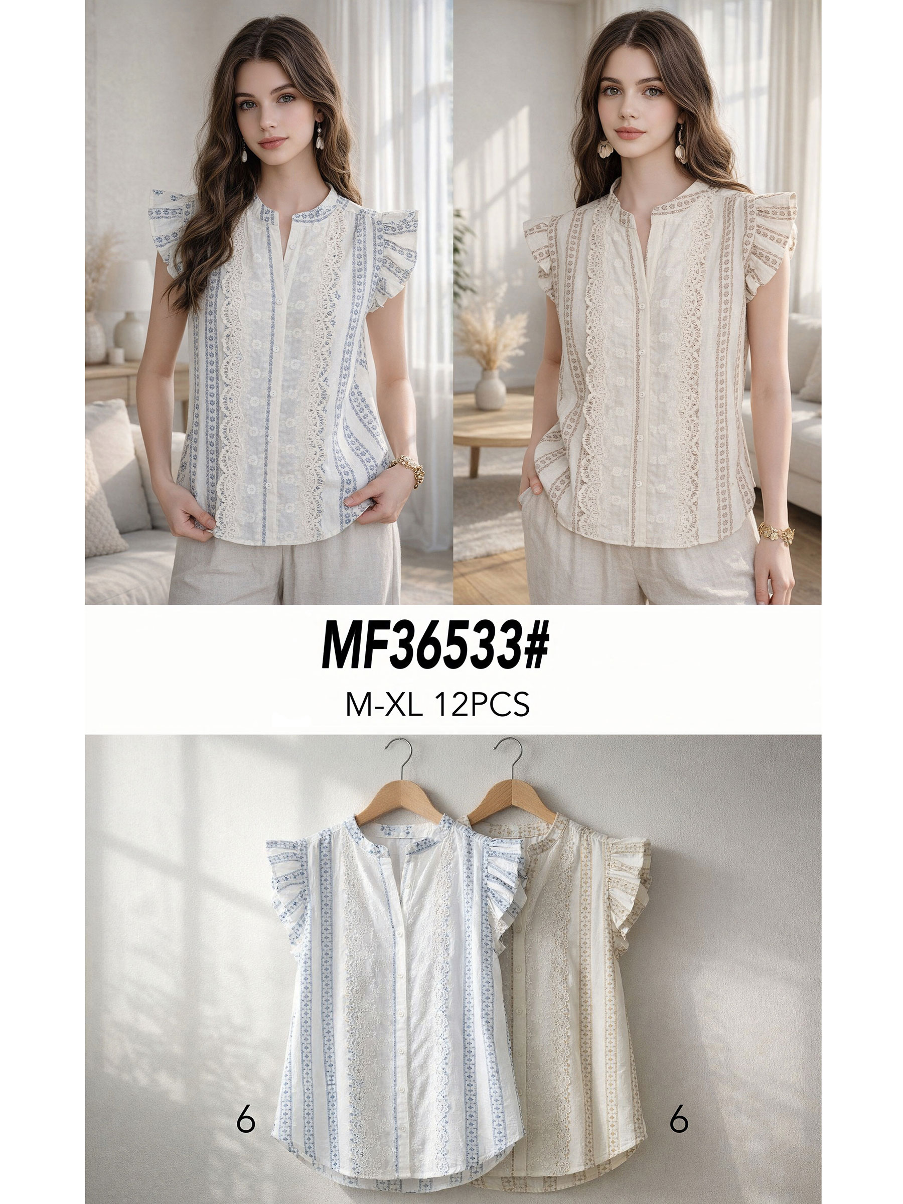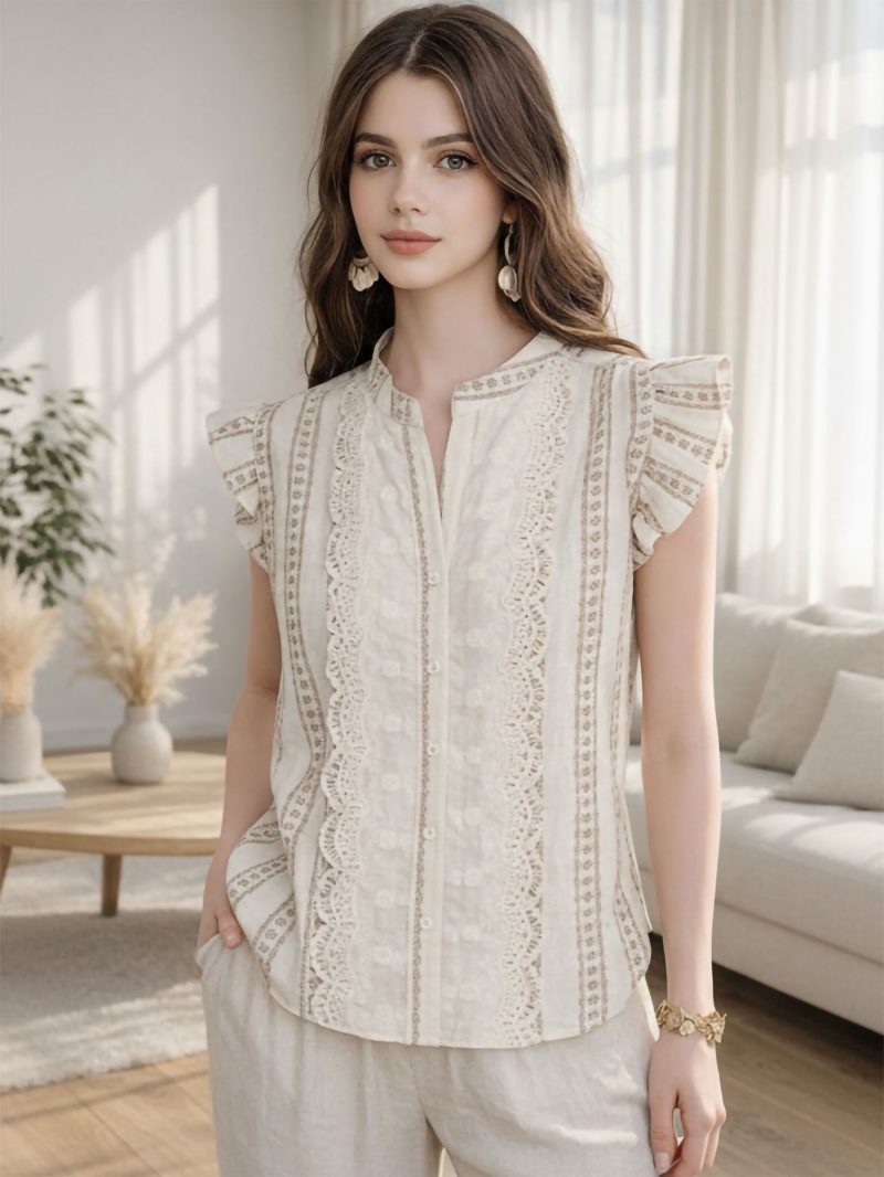 Chemisier en coton à rayures de dentelle