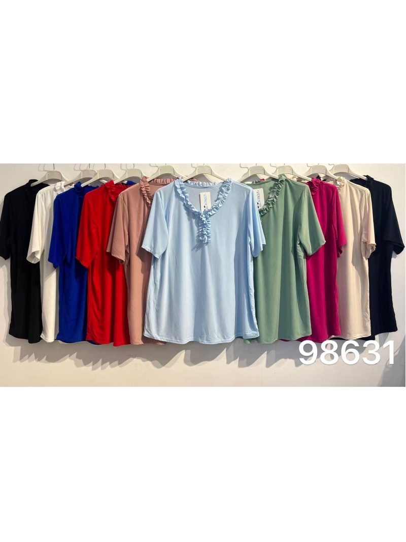 Blouse en lycra à col en V et volants Blouse en lycra à col en V et volants