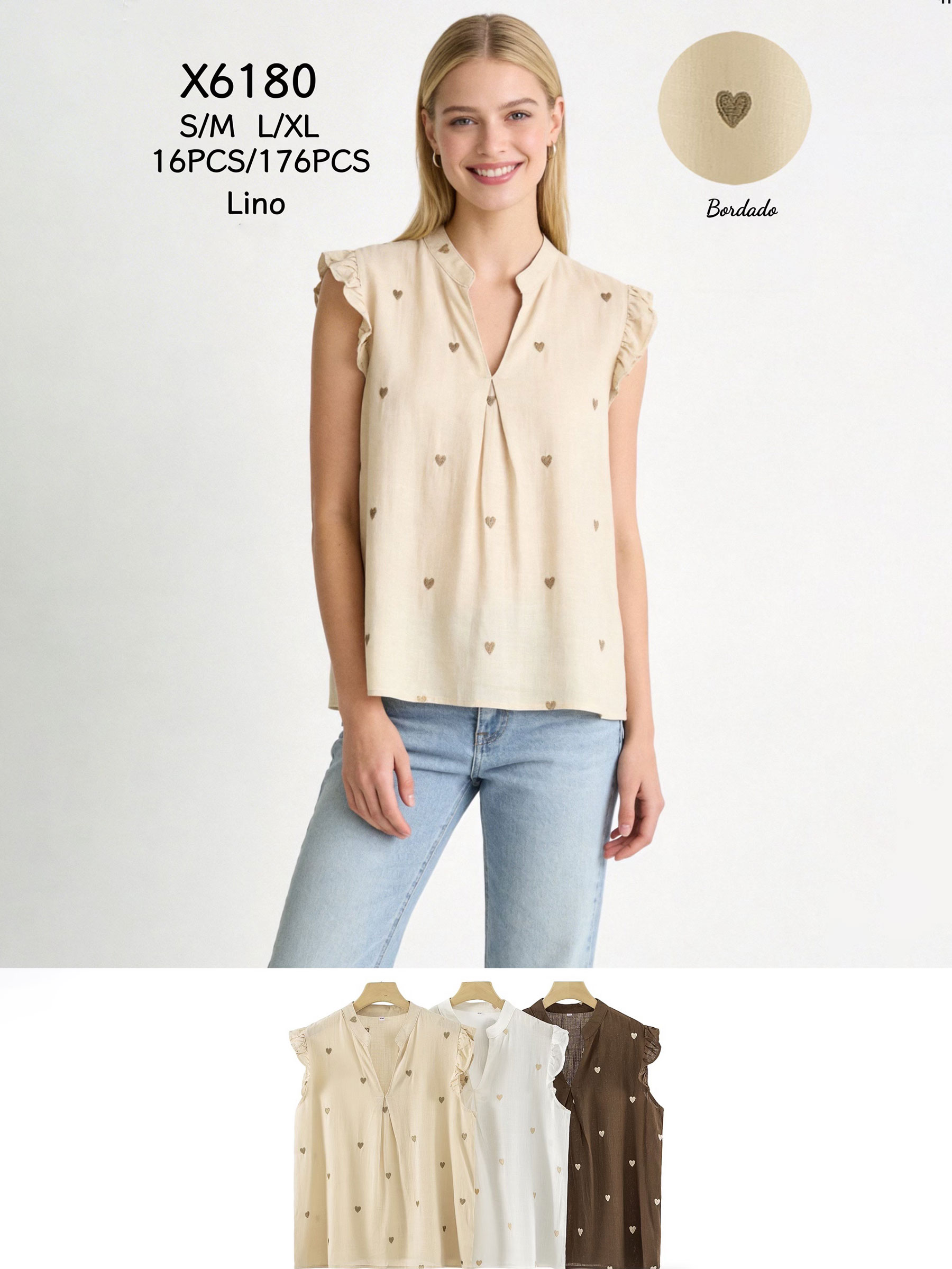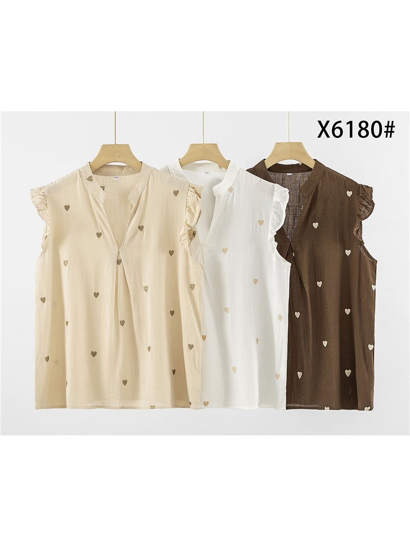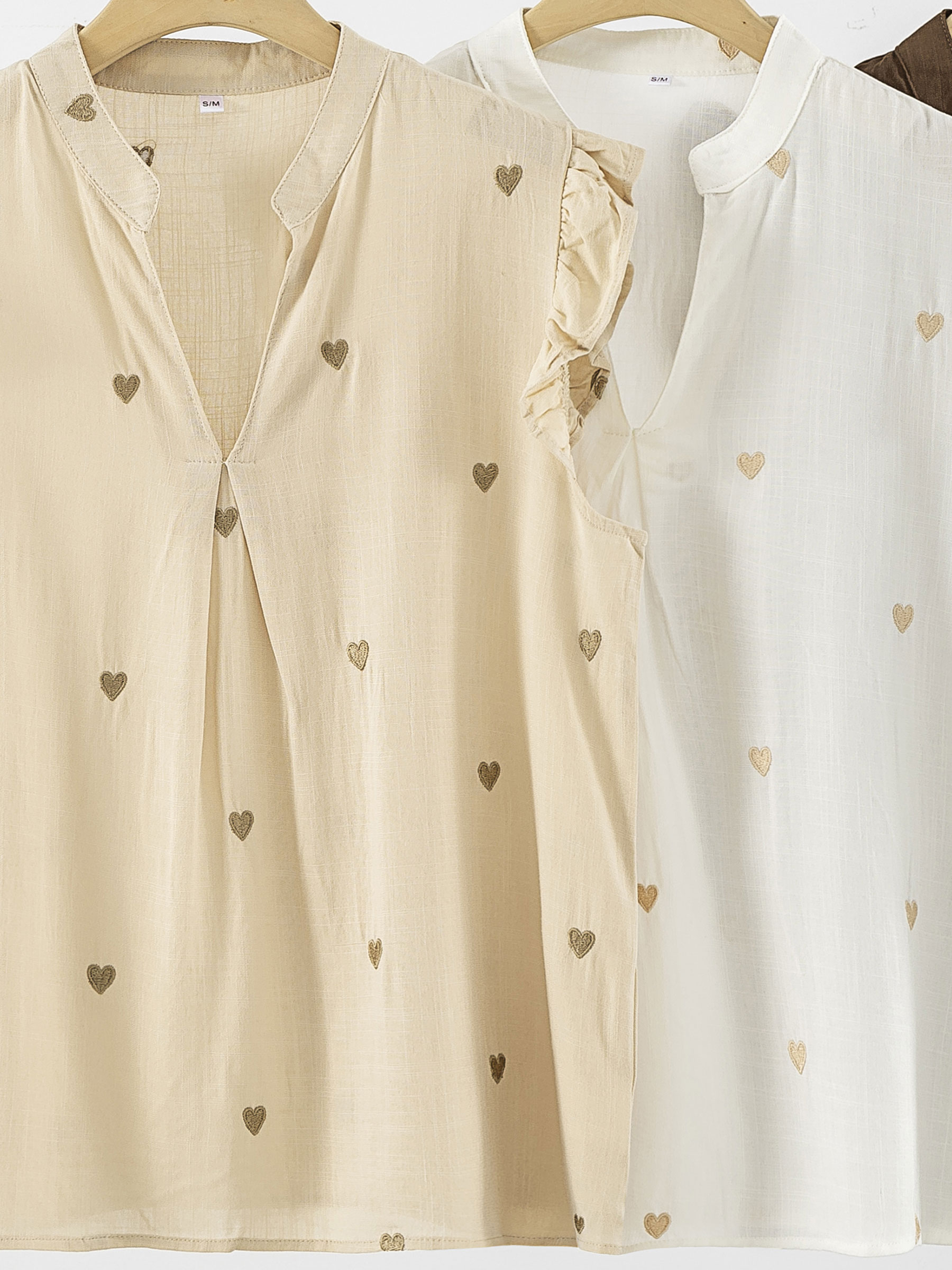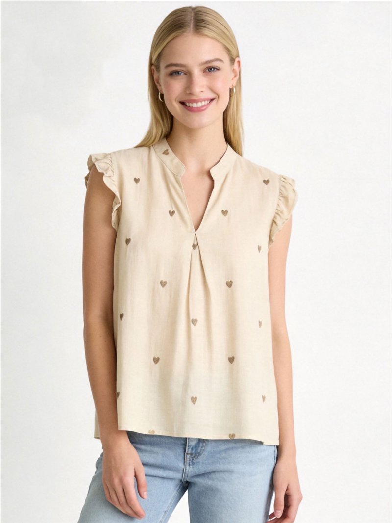Chemisier en lin orné de cœurs brodés et de manches à volants