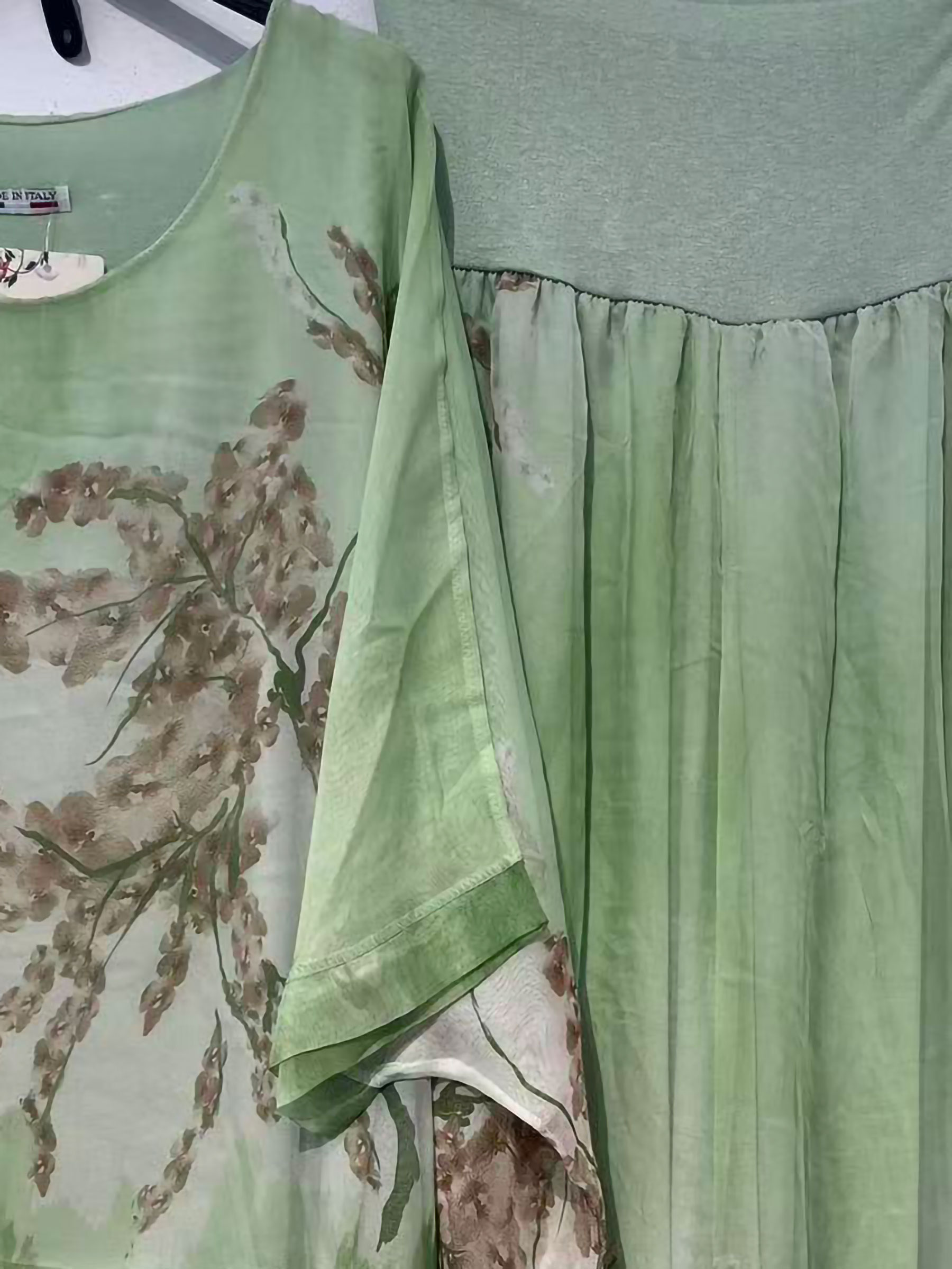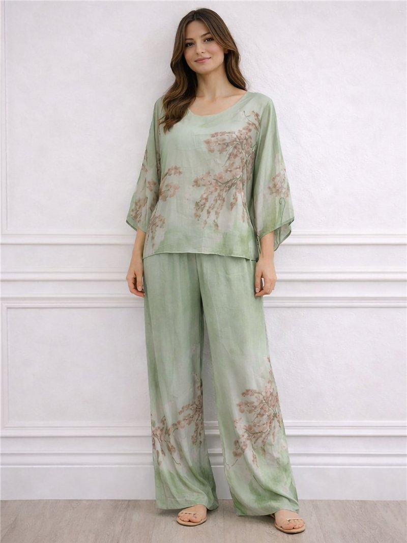 Ensemble blouse longue et pantalon en mousseline à imprimé floral.