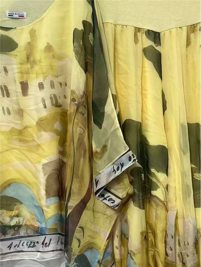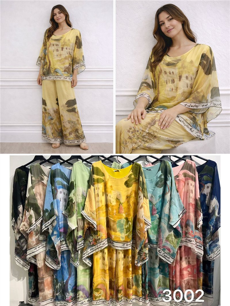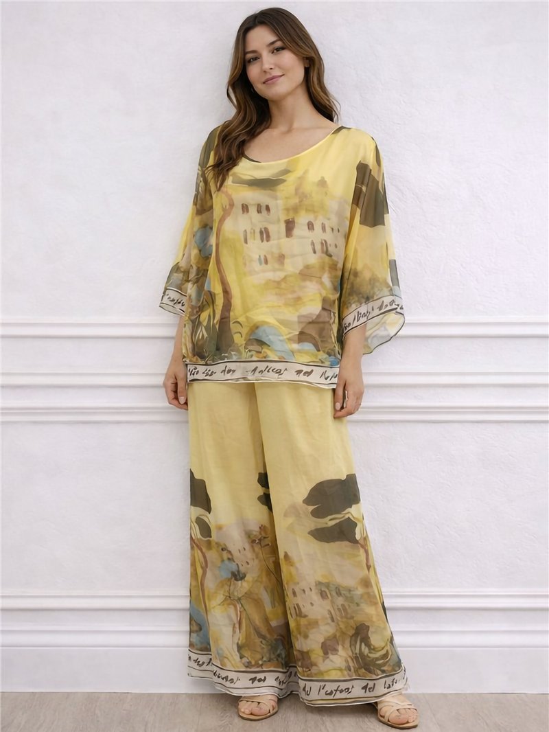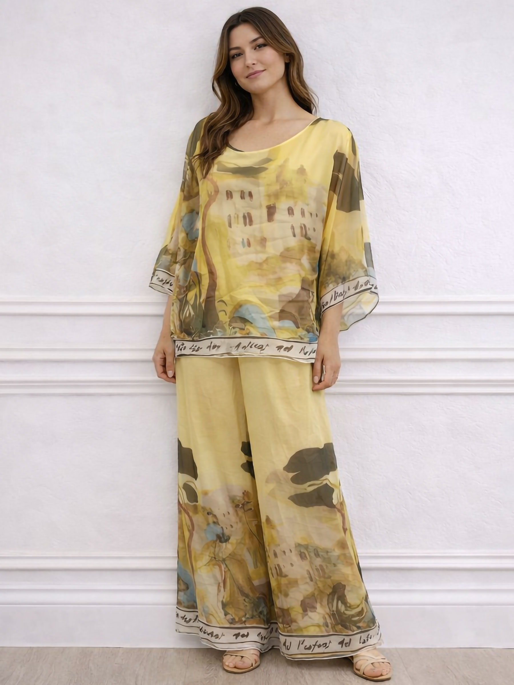 Ensemble blouse longue en mousseline à imprimé paysage et pantalon