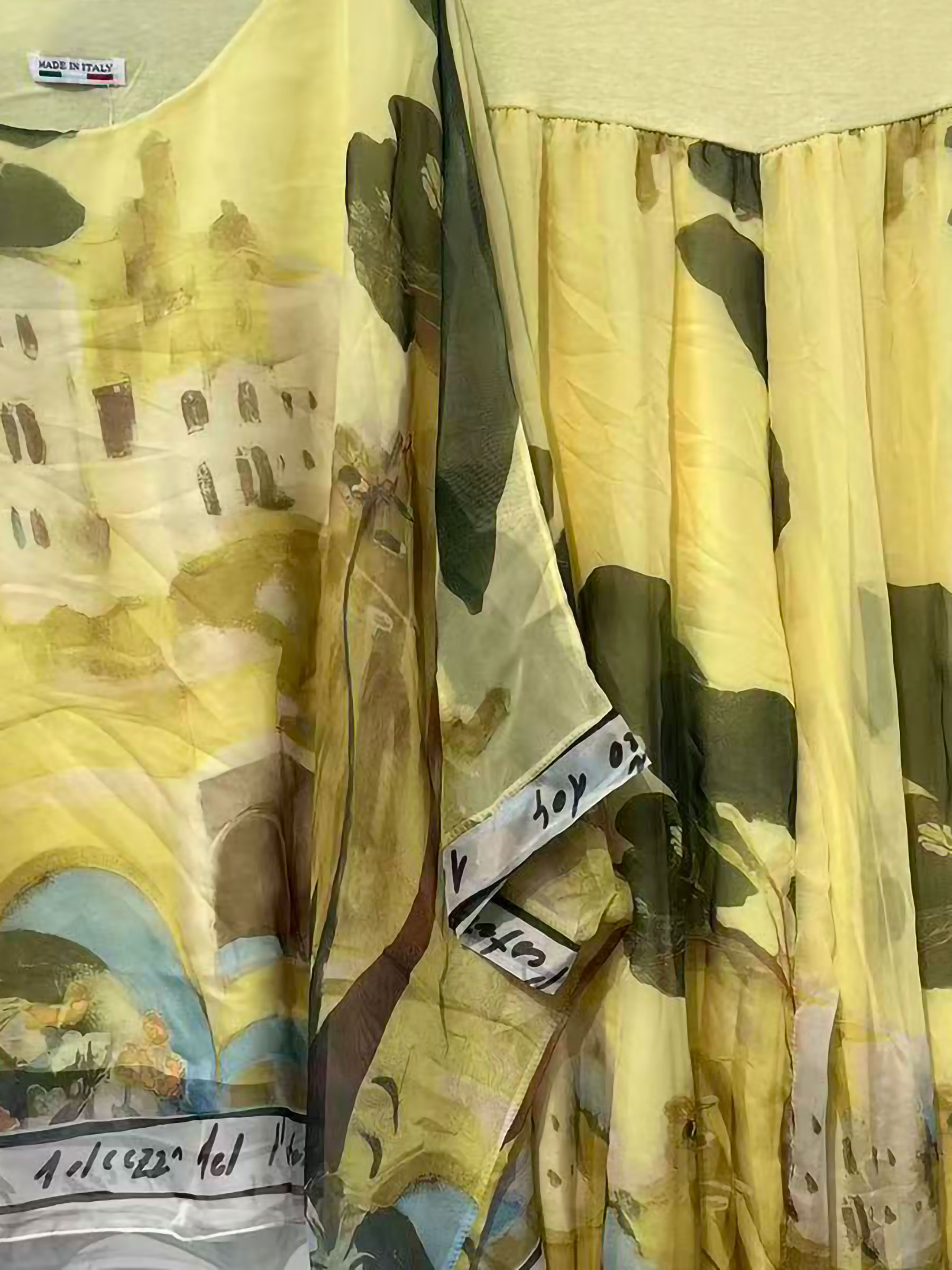 Ensemble blouse et pantalon maxi en mousseline imprimée paysage.